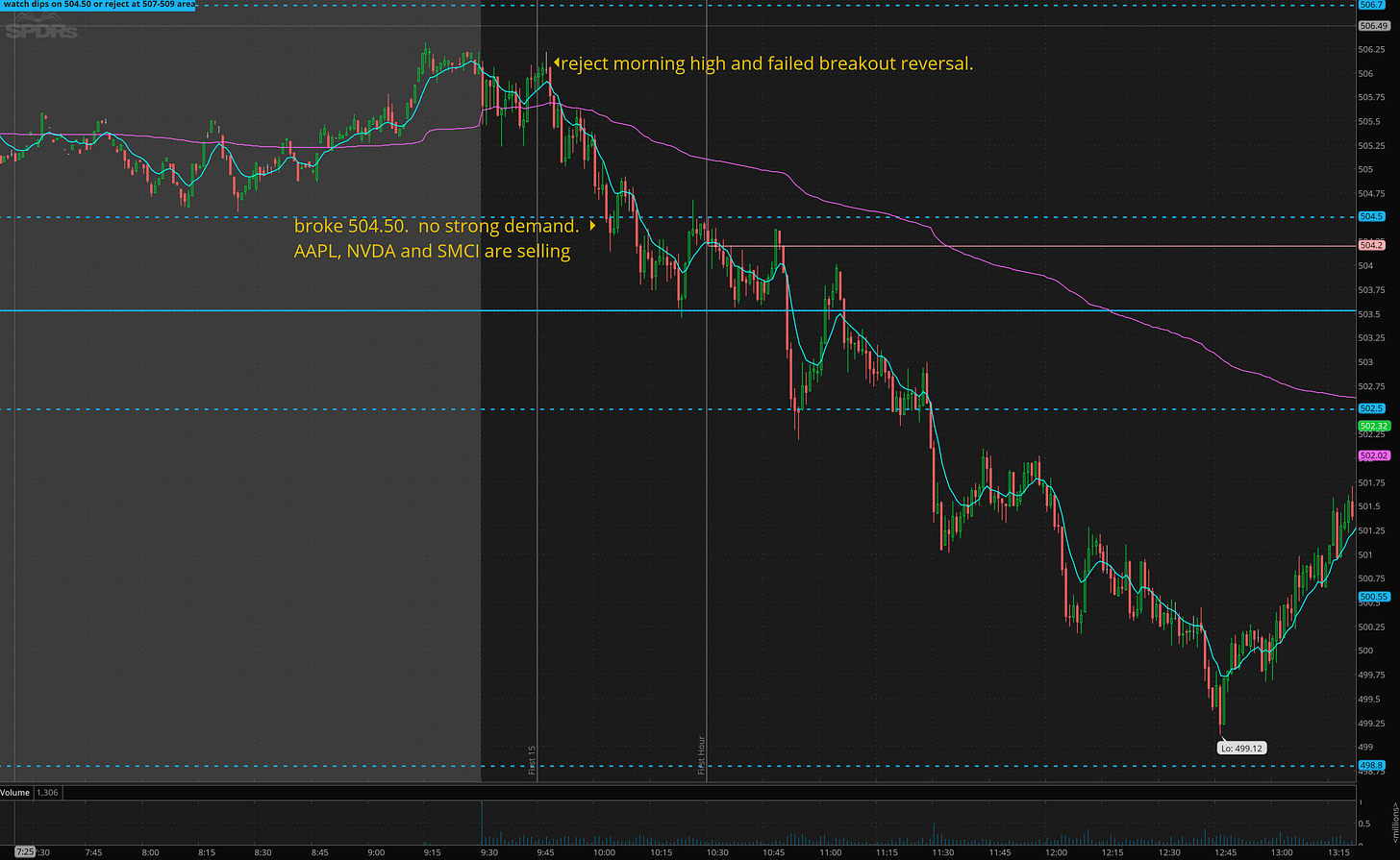 My original plan was for a 504.50 dip and rip over 506.70, but given the action I quickly flipped to puts.