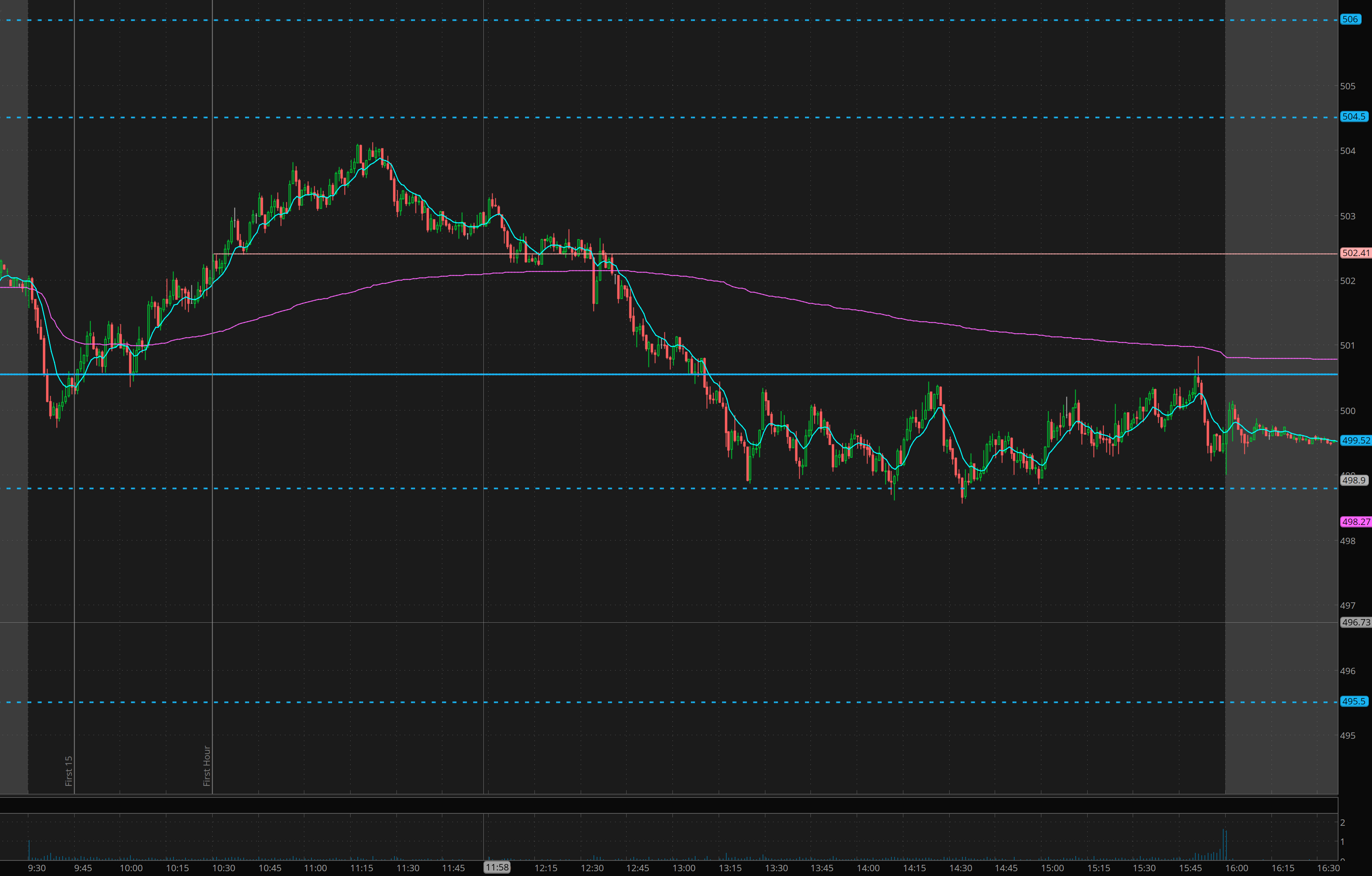 Then if you see the chart we flipped short one the vwap break around 12:40pm. I alerted 5020p at $5 with $1 risk. These ran to $20!!! on the flush back into 499.