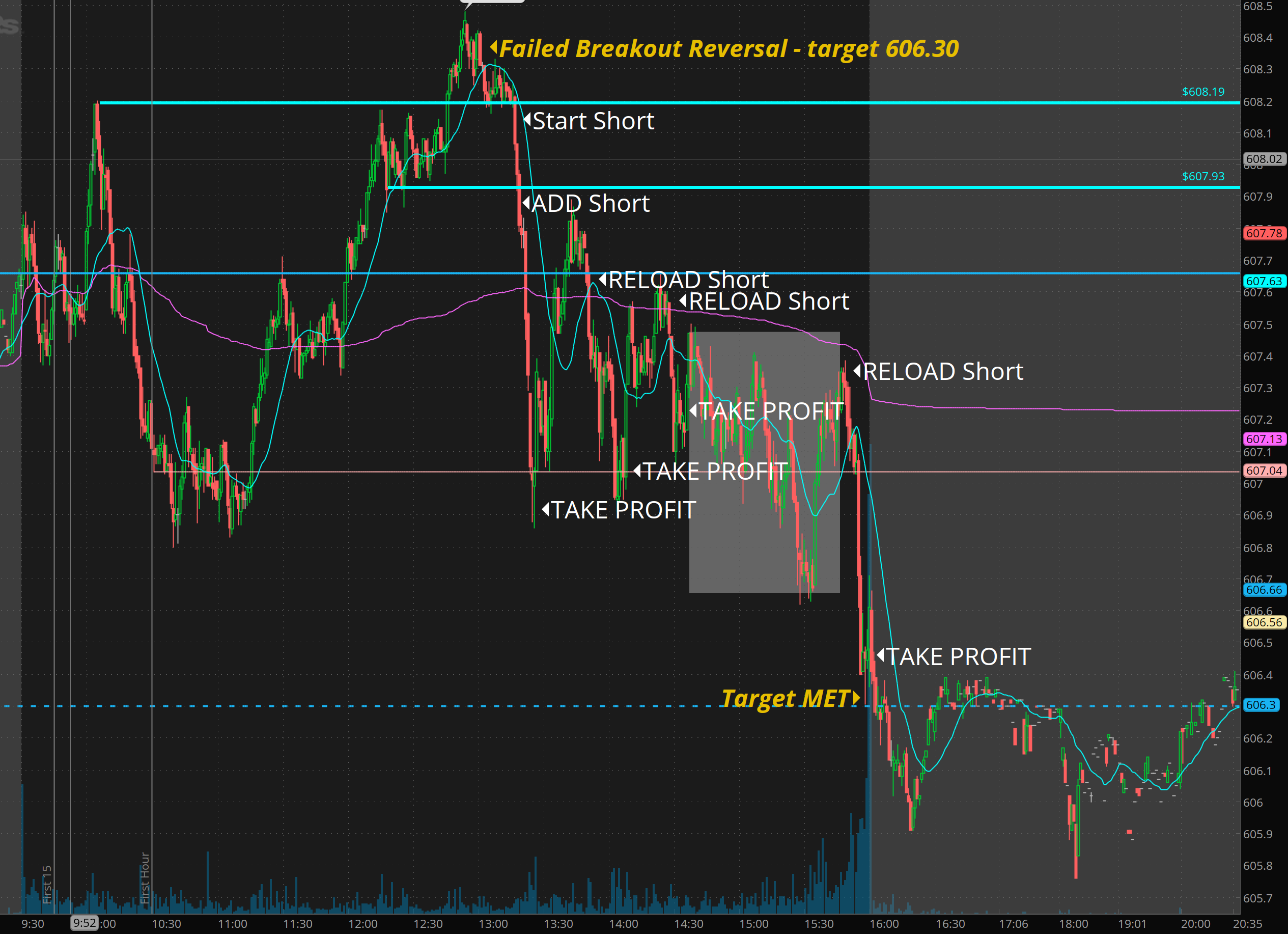 SPY - pushed to new highs but didn’t reach my next level and then did a failed breakout flushing right to my 606.30 level!