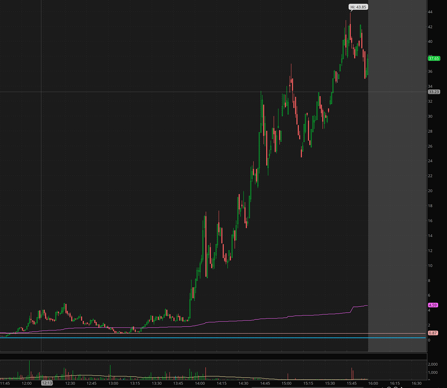 the contracts dipped to 0.87 and eventually ripped to $43+. If following THT process, you should be out 60-80% of the position at $25-30 (once it got to 775) and let runners pay you if any more comes.