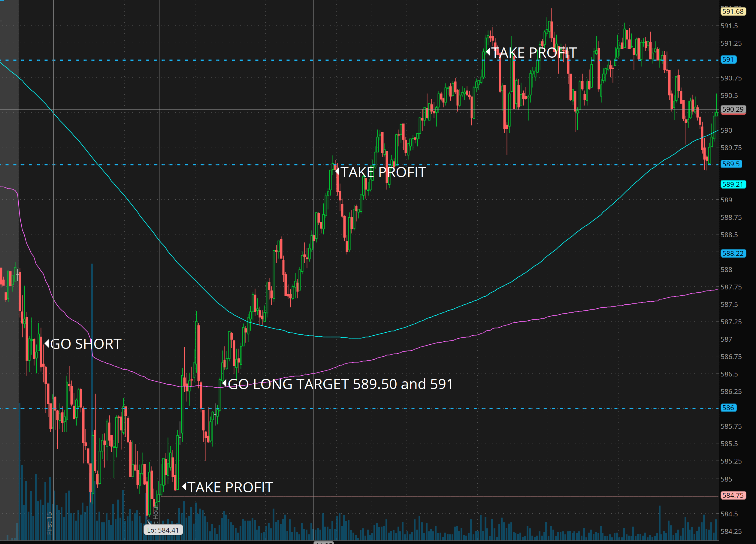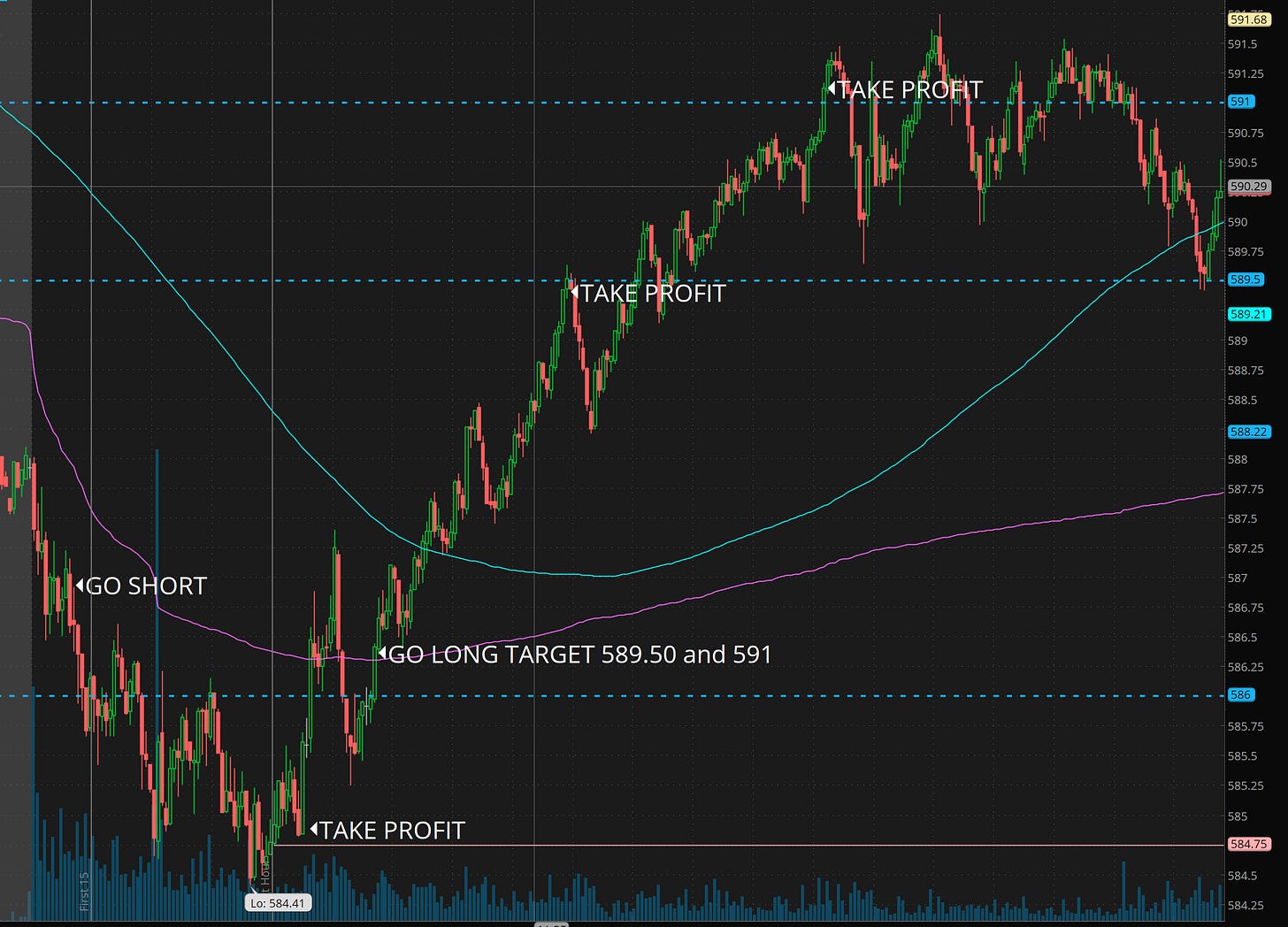 My goal 2 levels. We got 589.50 and 591. Mission accomplished! What does that mean? I share this trade plan with THT PRO members and we got a 300% gaining trade out of it.