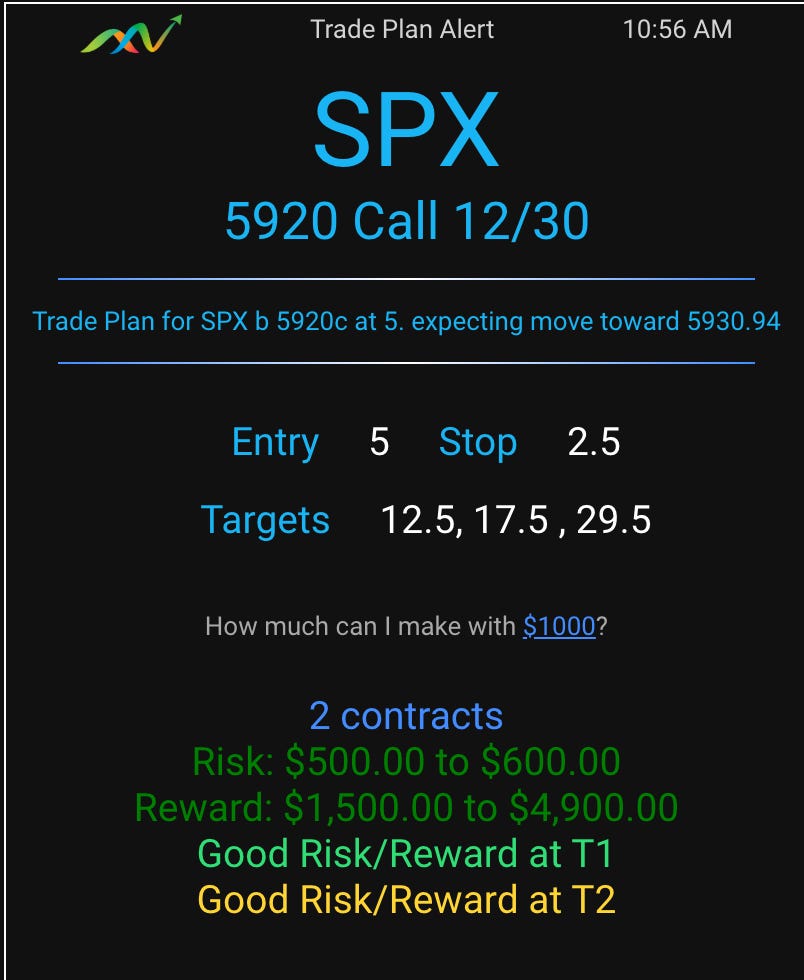 PS. Congrats to Moe! I got a nice thank you message from him for teaching him my processes. He took SPX 5920p for $1 and it ran to $12 into the close!