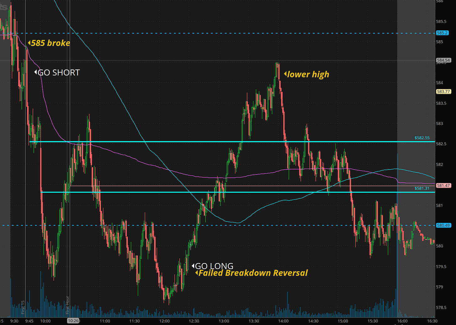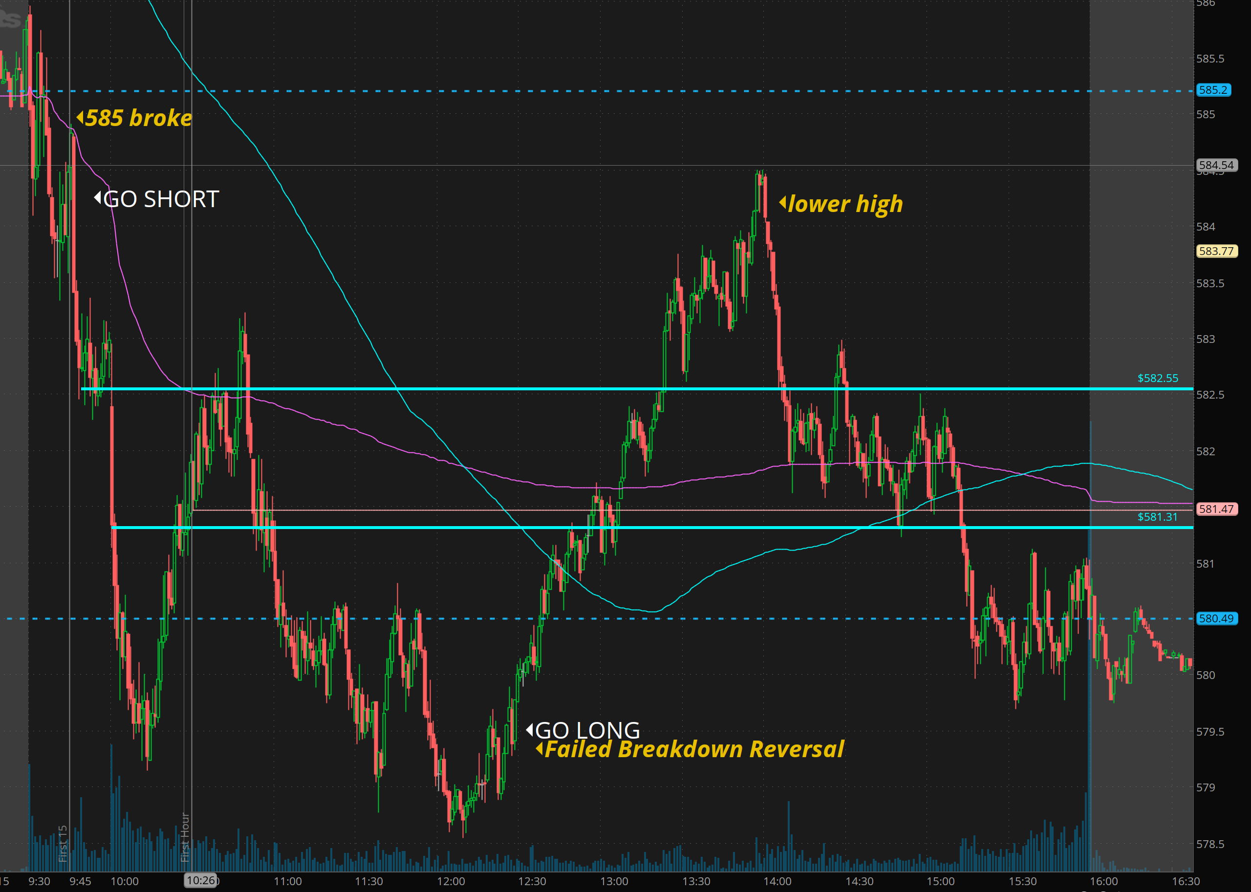 SPY - broke 585.20 and flushed to 578.50 pushed back toward 585 and failed again.
