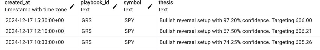 Tested Algo on SPY yesterday. Above those are the generated ideas. Not bad! 2/3 wins. Still having problems getting the datafeed to work consistently and the for the algo to recognize the realtime data. So been working on that.