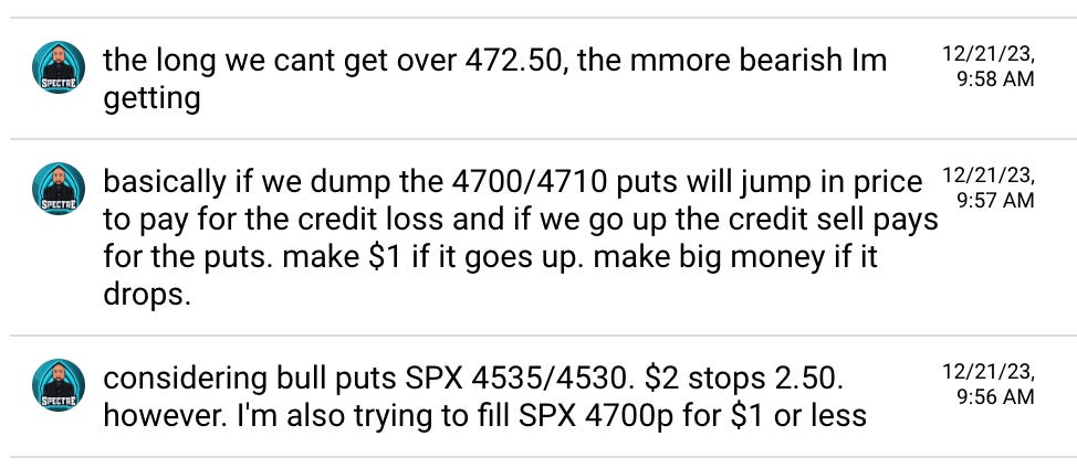 So I made bull and bear plans. I figure 4700p for $1 is a great risk/reward if a dump develop. It would at least spike to 4 on a dump and could run to as high as 8-12 if we got to 468. I also did credit sell with tight stop.