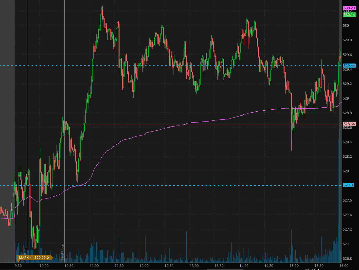 There was a failed brakdown reversal at 527.80 for a 1.2 pt push into 529. Overall that isn’t much to trade.
