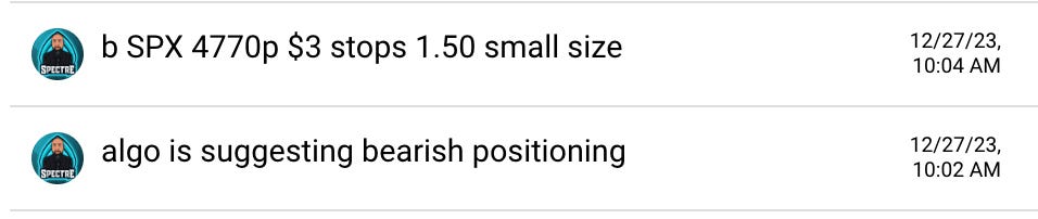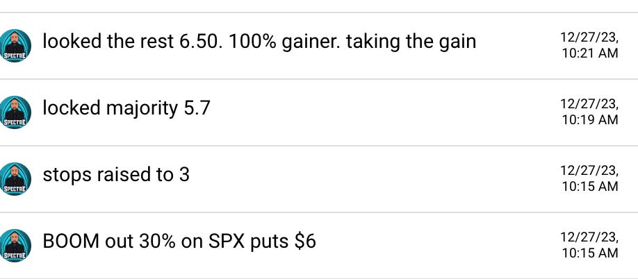 So why did I take profits? Because this was dipping into that SPY 457.30 level. And if we are range bound this will rip right back up and wipe the gains. which is exactly what happened. Being it was my niece’s birthday. It was time to wrap it up and enjoy the day with her and the family and happily avoid the slow choppy holiday action.