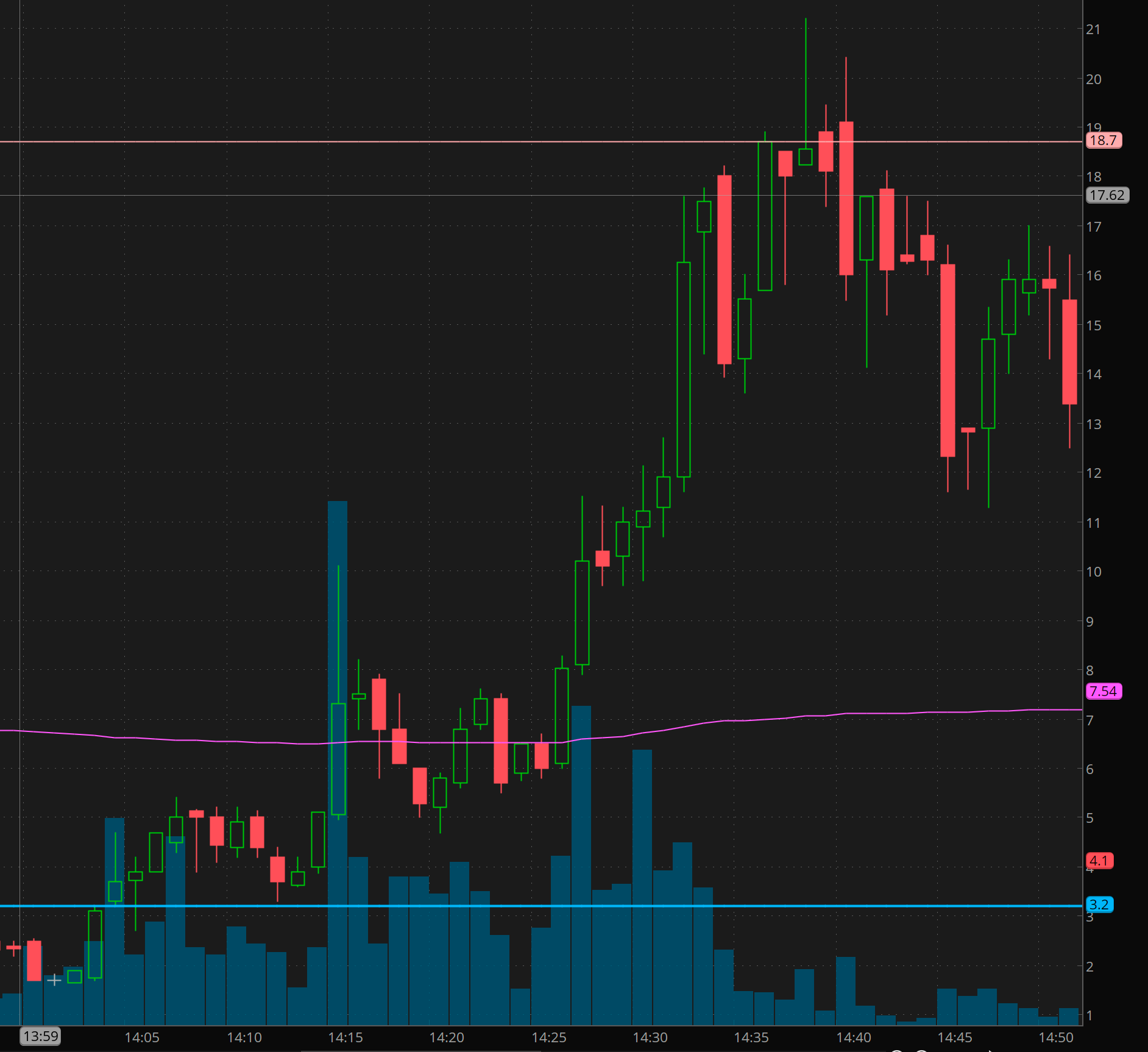 using 50% for stop, or $3 risk and a $25 target that = $19/3 = a 6.3R trade potential. We take that bet!.