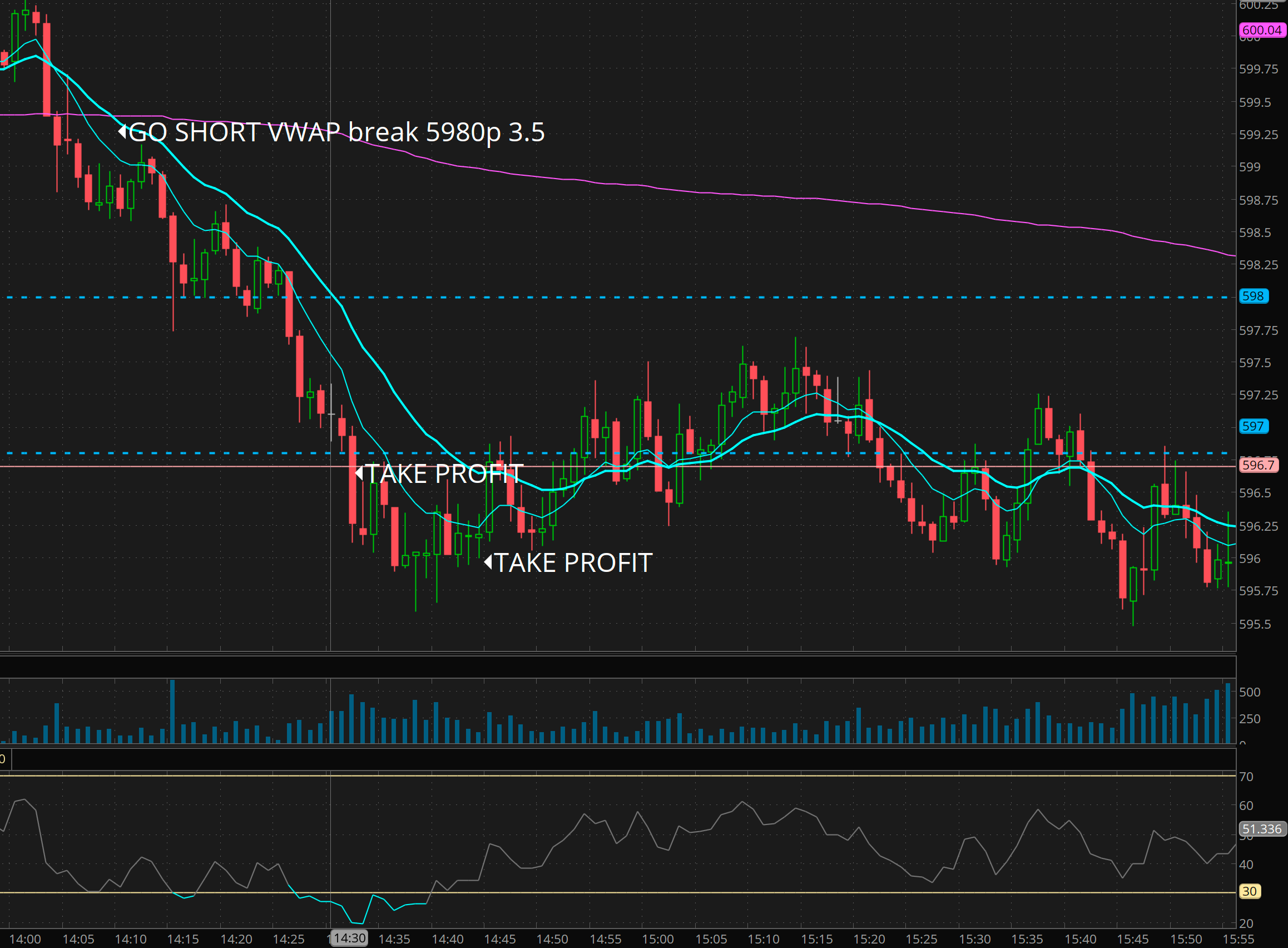 IDEA: SPY breaks vwap and may tests low/goes to 598.