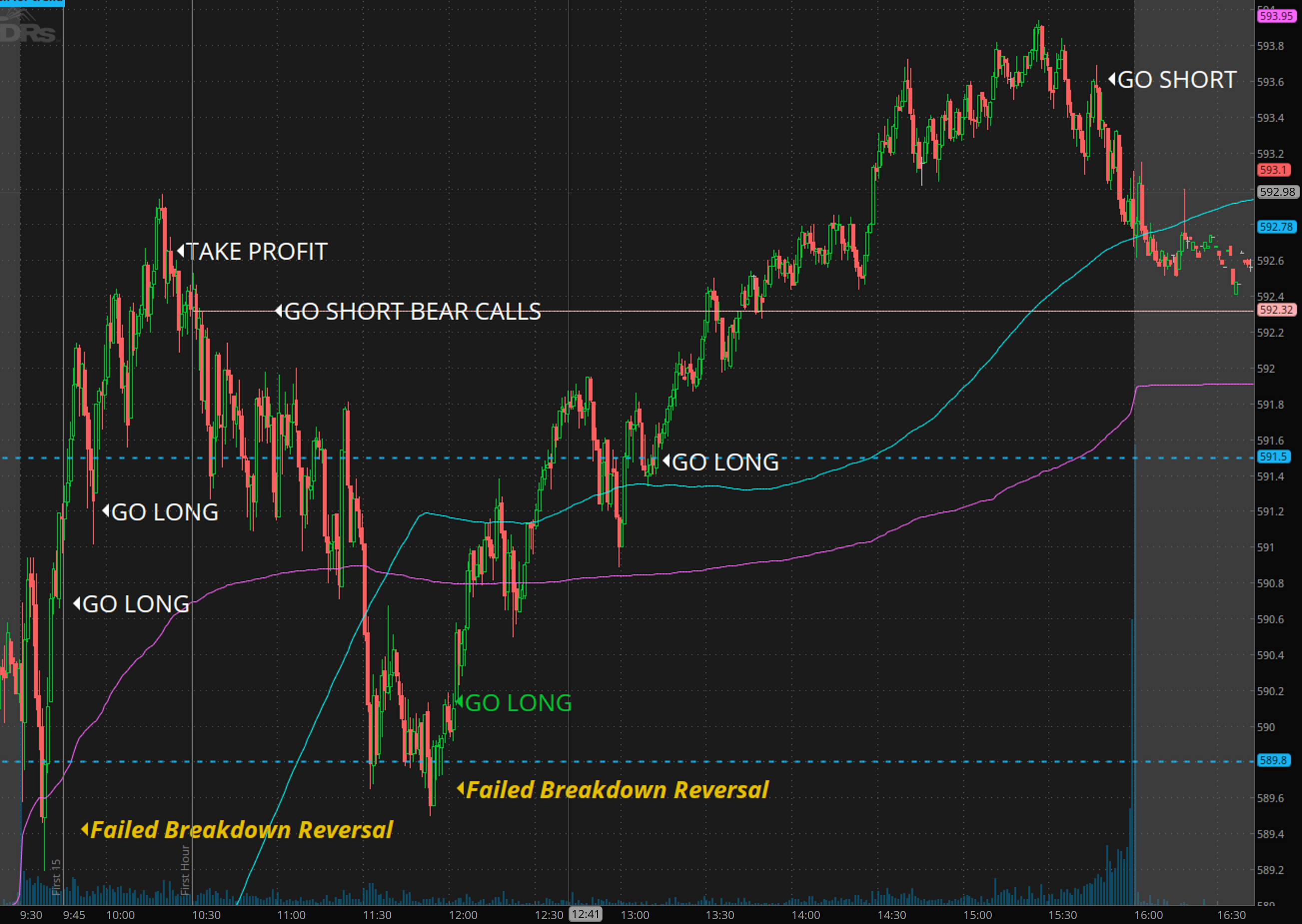 I got bearish per process once 10:30 level broke and vwap broke aiming for some gap fill, but we took profits at 598.80 once it was reclaimed.