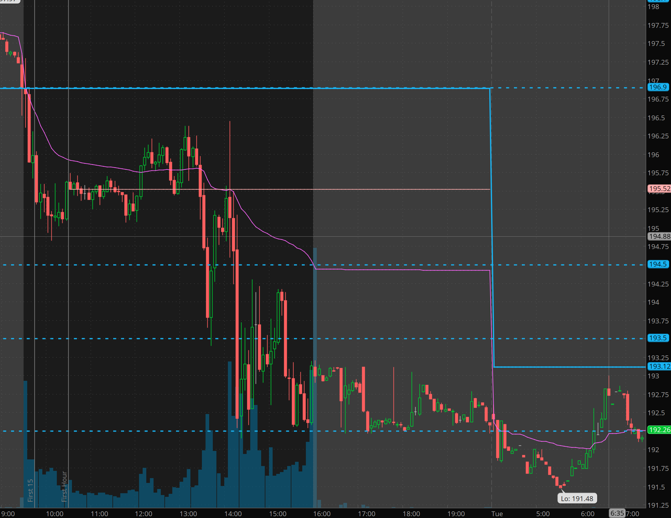 Based on Monday’s reaction to the AAPL AI even I was looking for a pop into 193.50-194.50 to position short looking for 187 -190 to come and then flip back long. The market had a different idea.