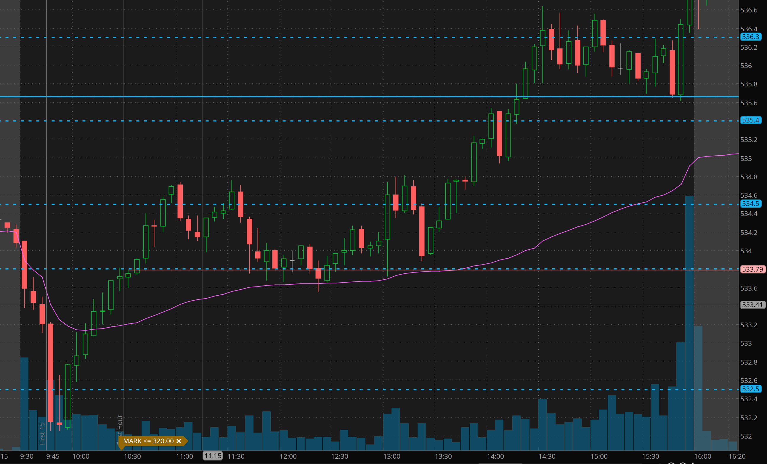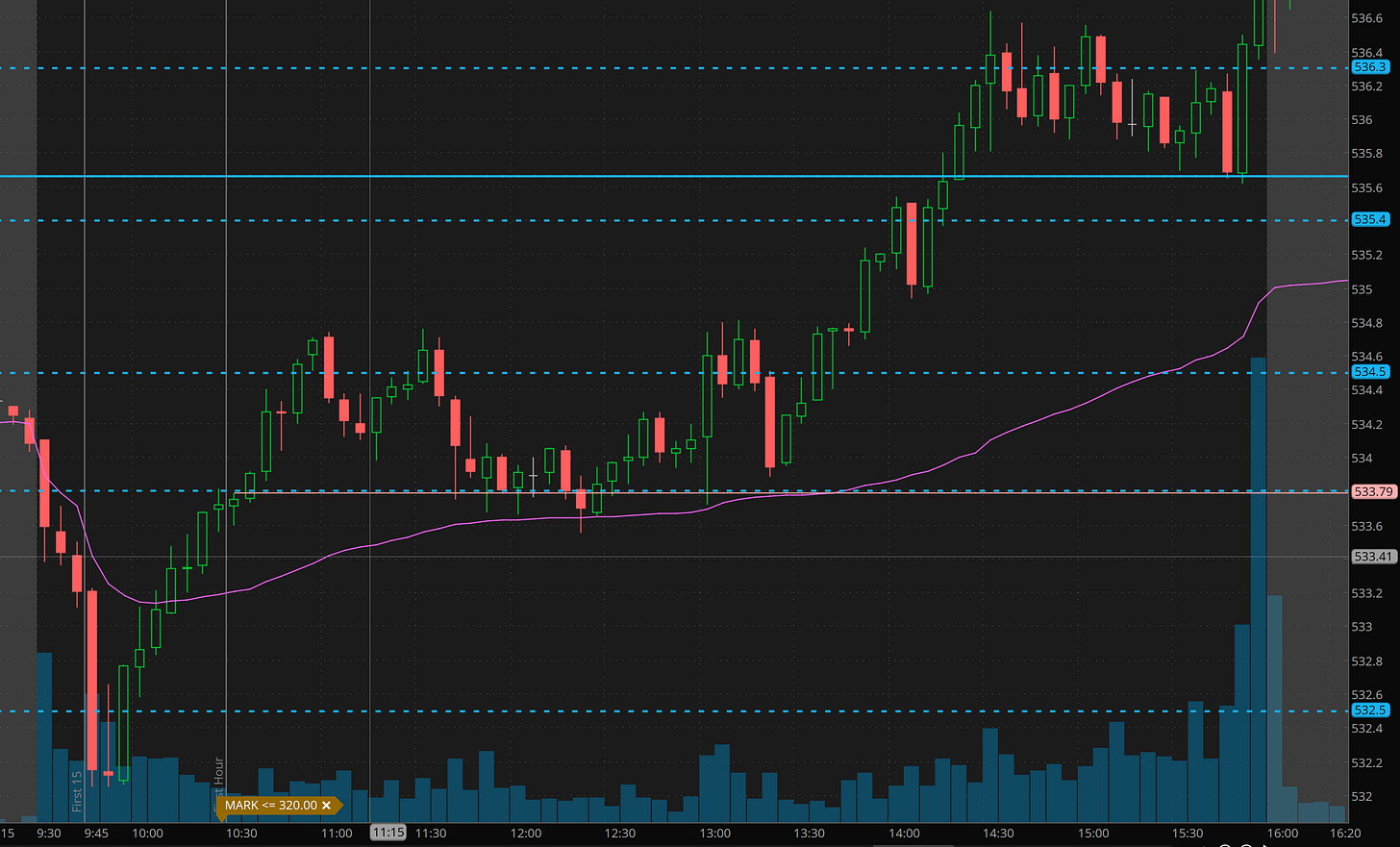 But you cans ee how there was a 4 level gap down into a key support levels at 532.50 as possible or getting long after vwap reclaim shooting for a gap fill move.
