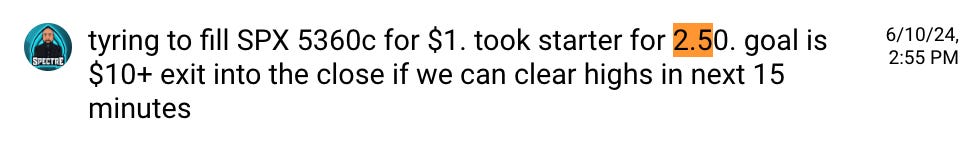June 11 - SPX 5360c $2.50 —> ($2500 —> $15000 potential)