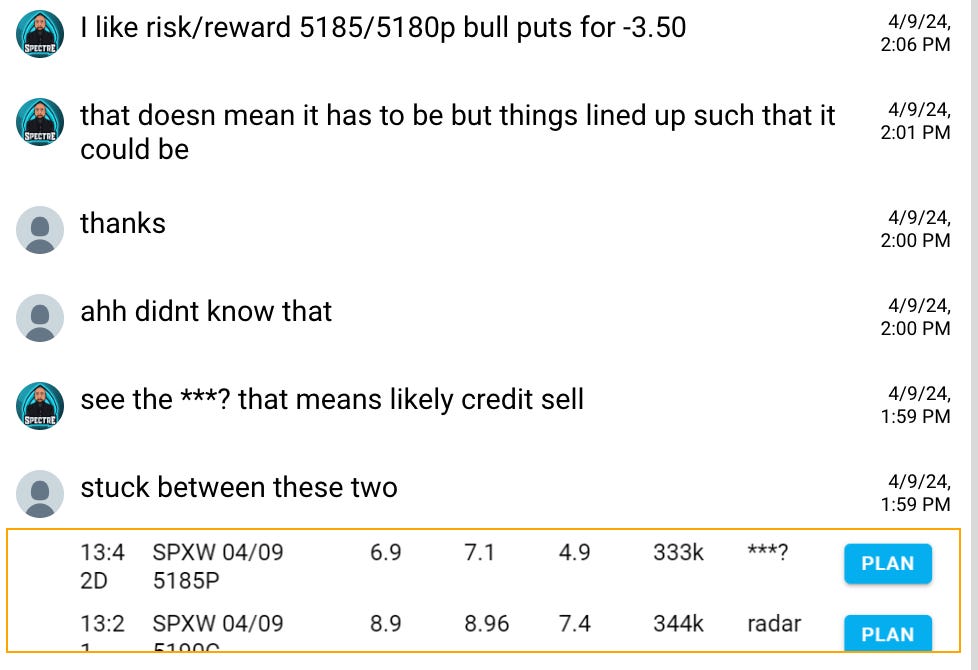 NOTE: screenshots from chat are from Edge Trade Planner. A platform available to THT PRO members. Join Us for live commentary and planning. Note my goal is to actively trade less than 2 hours a day finding 1 to 4 great trades a day.