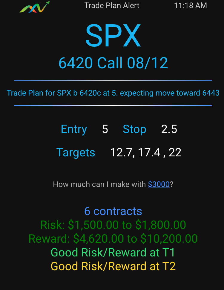 I made a secondary plan to scoop SPX 6430c for 0.50-1 target exit 3-7.
