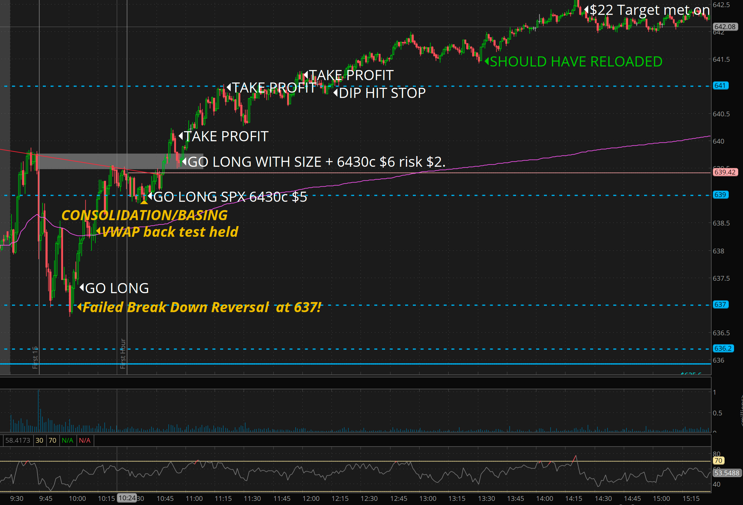 That next spot was the basing on 639. I alerted scooping 6420c for $5 and then shared this sell plan.