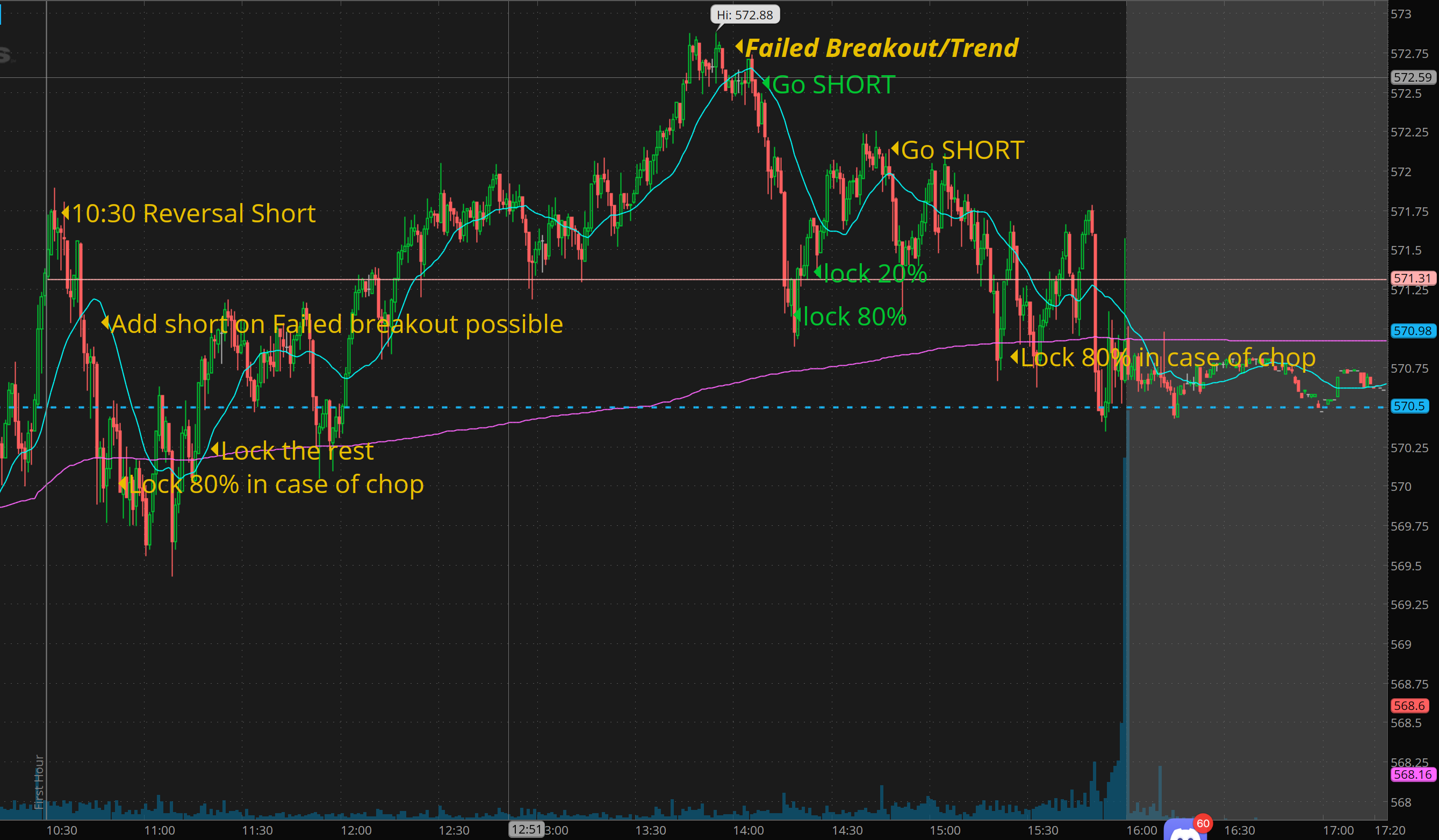 I ended up having a thesis that we will close 572 which let us take SPX 5730/5735 bear calls for 4.20-4. risking $500-1000 for 3500+ gains by the close. That was the easier setup for me without having to watch the charts all day. Basically place the credit sell orders and if I get filled, great!