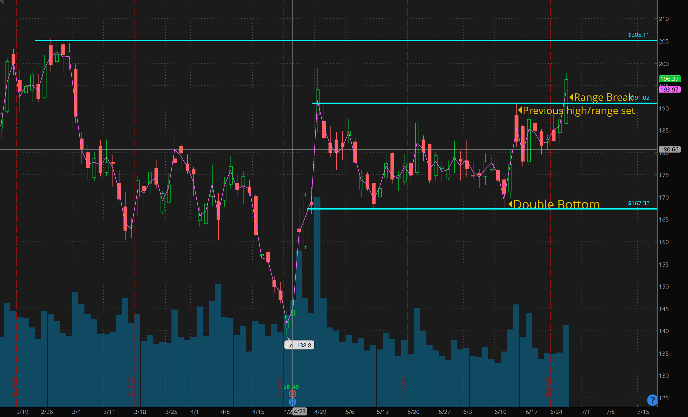 June 11 - AAPL 200c $1.50 —> ($1500 —> $7500 potential —> $20000 if swung)