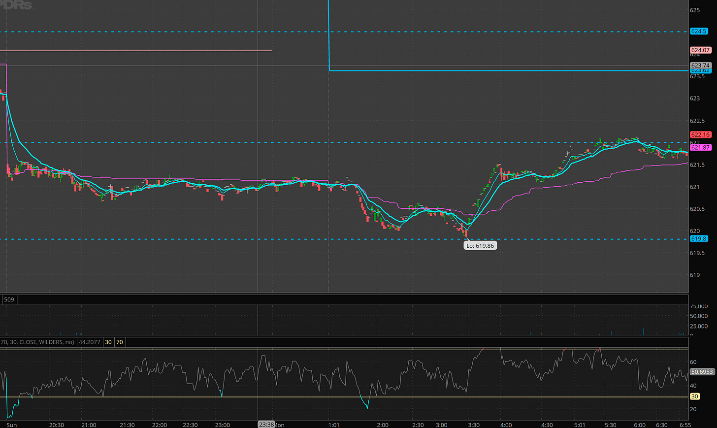 Premarket SPY gave me the 619.80 level back test i wanted but with all the new and CPI/PPI data coming this week how will market react. Well for the most part we focus on level to level trading and it doesn’t matter for intraday scalps except to inform bias.