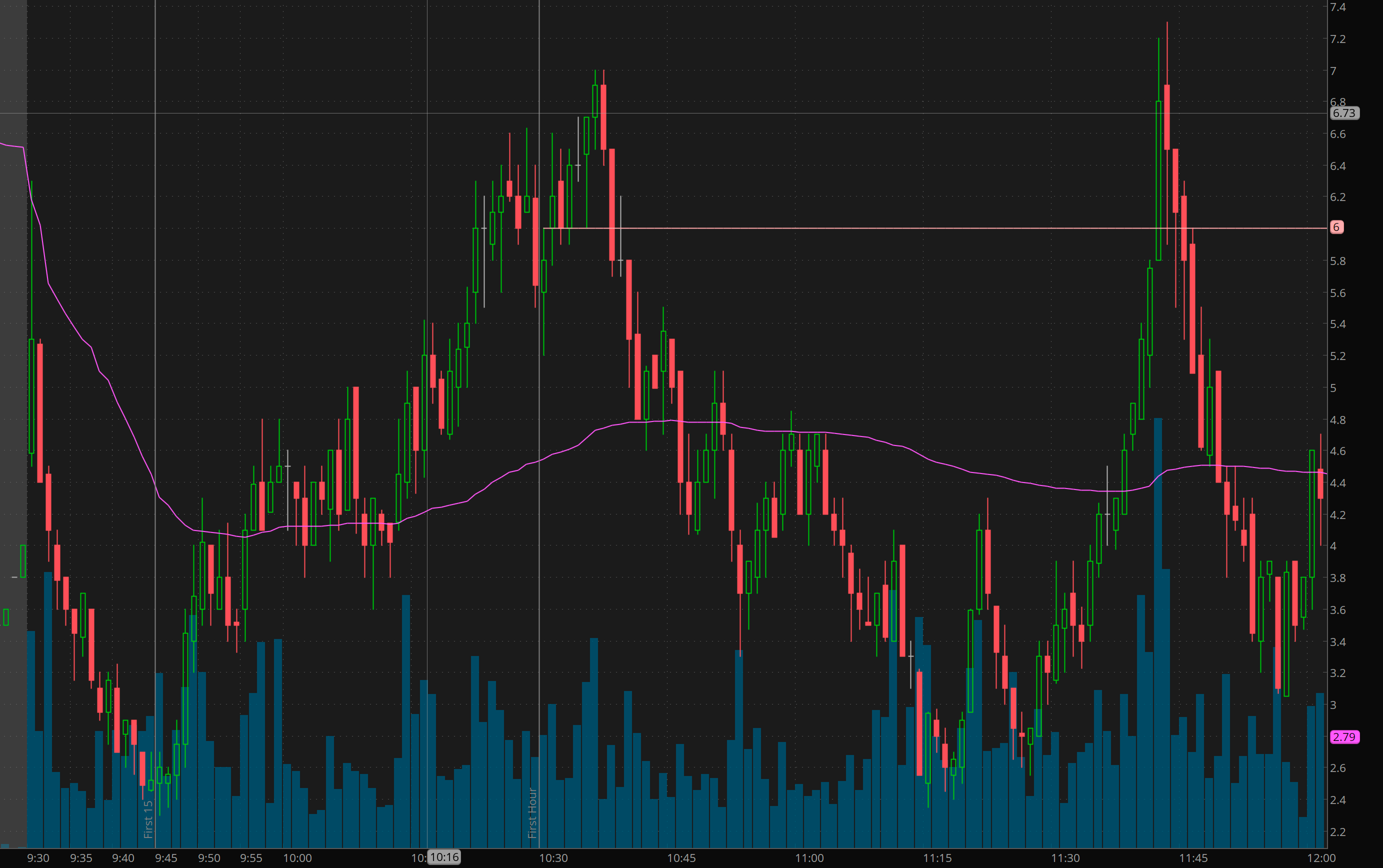 Now I’ve been playing with /ES and futures so instead of taking calls so early in the day I chose futures. In premarket I had alerted how I too /ES 6285 calls. We got a nice 10-15 point pop on that on the open and then dip on 6280 and quick reversal after the first 15 minutes.