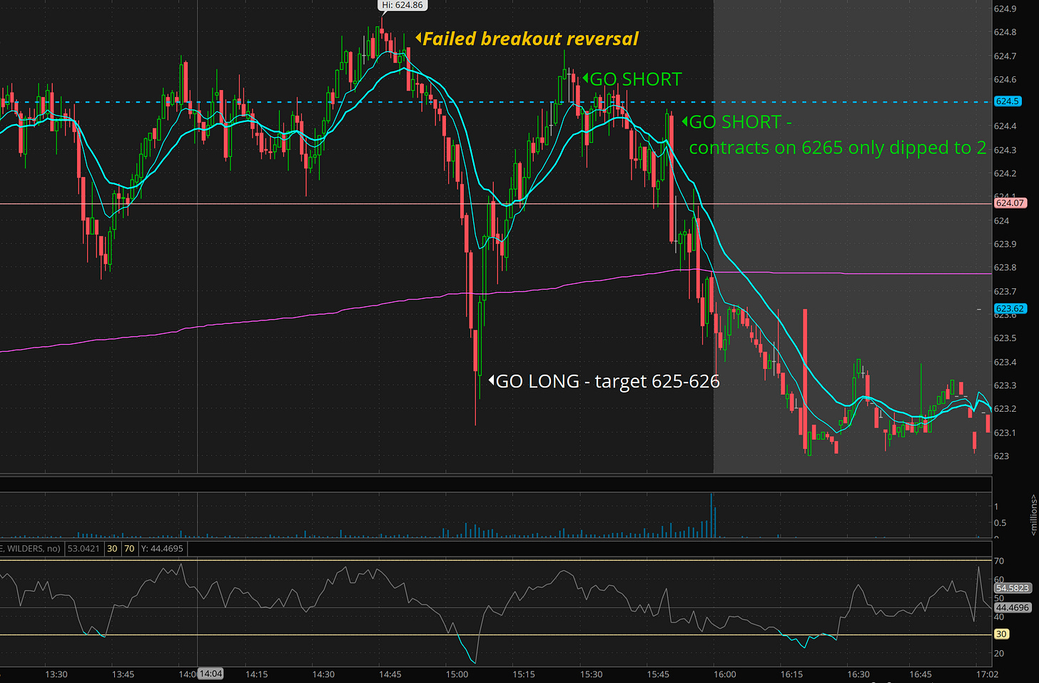 We then got a clean backtest to reshort. That is what I missed that I’m pissed about. It was clear but since range was tight I wanted 6265p for a cheaper price. 6260p would have paid at 0.50 though.