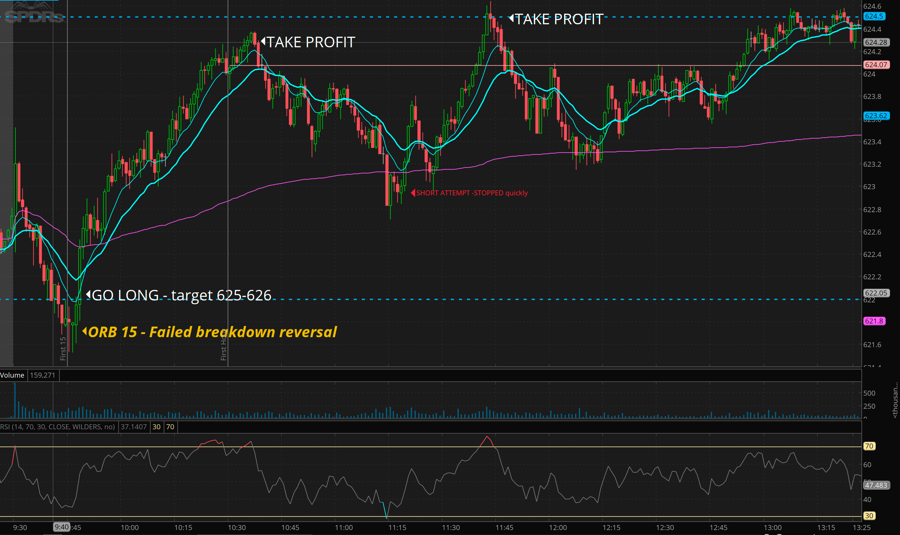 Join either on support test of morning lows or failed breakdown reversal at key level