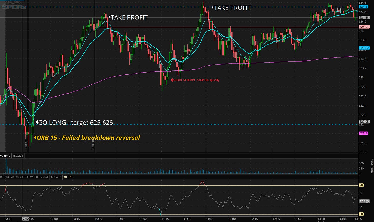 Friday was wild for our swings! SPY gave a gap down and clearly consolidate all day with 624 being rejected. This morning it clearly tagged my level below for a failed breakdown reversal. The question is, will this dip buy be sustained into the banks earnings and CPI/PPI data coming in.