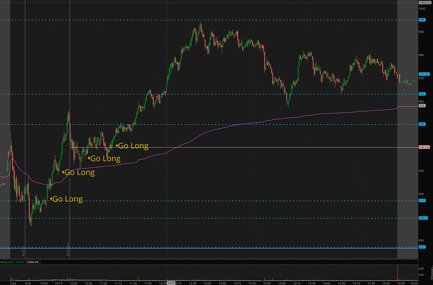 I was off on which level we would get a dip into, so missed the best entry, but there were multiple long entries leading to the run on 995