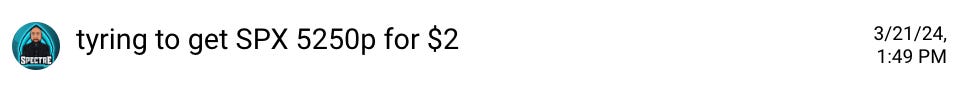 ** alerted 0.30 entry wanted. dipped to 0.40. entered at 0.50Mar 5 - SPX 5070p Entry $1 - High after $13.50 ($1000 → $13500 potential)