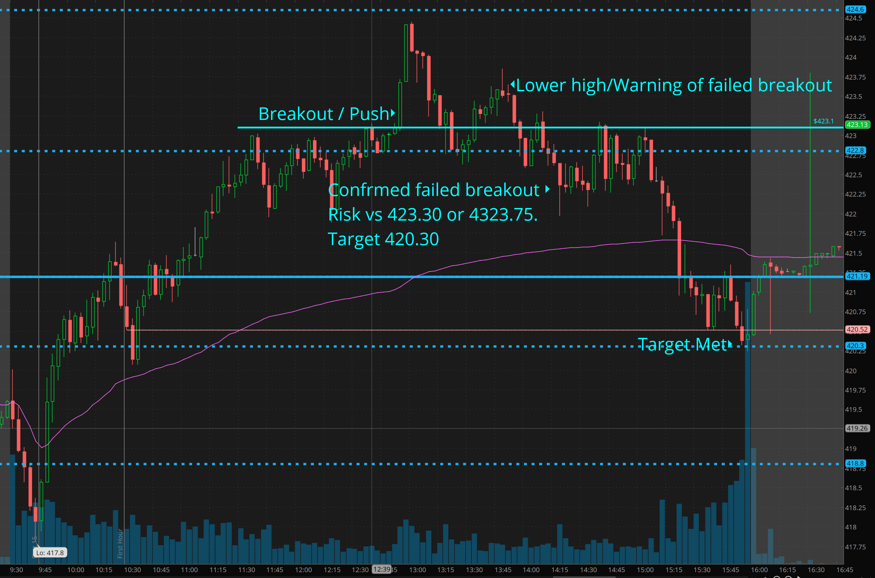 Here is how I would have traded the afternoon. Definitely tricky. The trick you need to do is anticipate the entry price on the pops after the confirmed failed breakout signal.