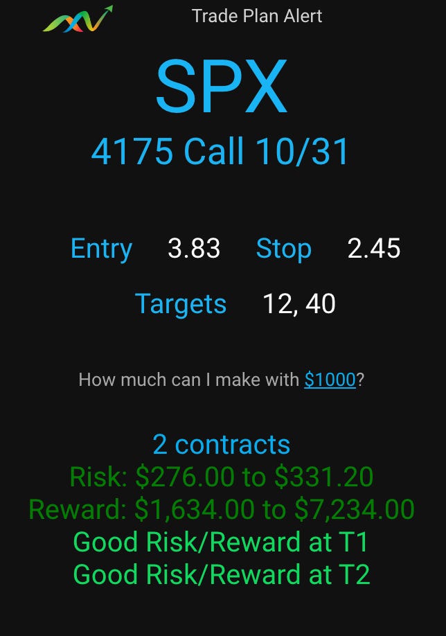 While it did not get to T2, it nailed the entry…. The option price was around $7 when the plan was made. Edge suggest a 3.83 entry and a 2.45 stop. Result — $12 T1 hit a high of $20. That is 5x the Entry Price! I was wrong on target for day, but still right on getting paid.