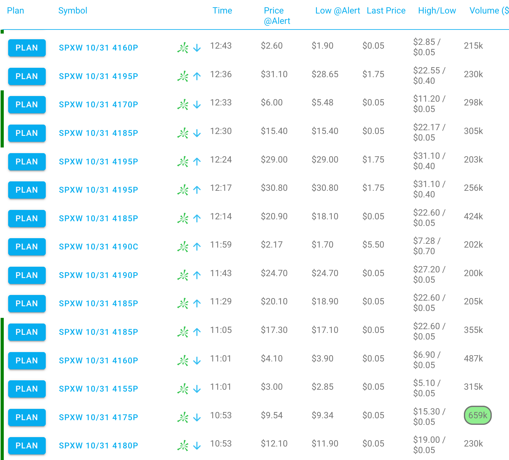 Notice how most of the alerts from 11 to 1 yesterday was put side, however after a little pop in price most of them expired worthless. I have a hard time believing these transactions were actually betting for more lows, I strongly believe they were collecting premium! So I’m trying to figure out the logic or some way of reliably predicting the intent.
