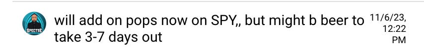 SPY 0.00%↑ Let’s move to discuss the afternoon short/longs. Given the consolidation action and my bias that we would test 438-440 before a big drop, I decided to go long off support and short off resistance (after 5 green days, day 6 is often red) and then let market show me what it wants to do and I’ll load up once it is clear.