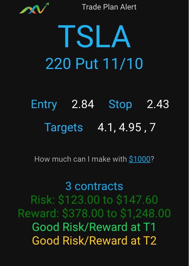 TSLA 0.00%↑ One of the goto setups I have is a gap up reversal for a gap fill. as we pushed into 226 and quickly rejected… I saw this alert in Edge and clicked PLAN and entered 221.50, 219, and 215 for my targets. based on the levels and the alert strike.