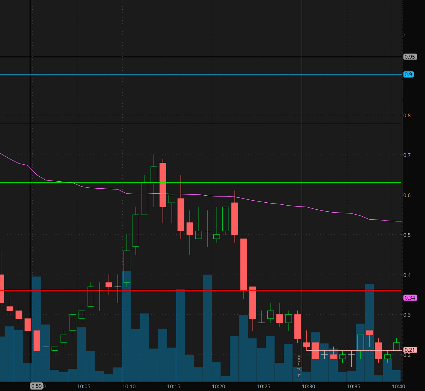 0.20 risk 0.10. so R = 0.10. 3R and 5R = 0.20+ 0.30 and 0.20+0.50 = 0.50 and 0.70. So I was expecting more, but automatically sold most at 0.60 and 0.5 on the vwap failure to clear. I then reloaded at 0.20 and got stopped at 0.10 on round 2.