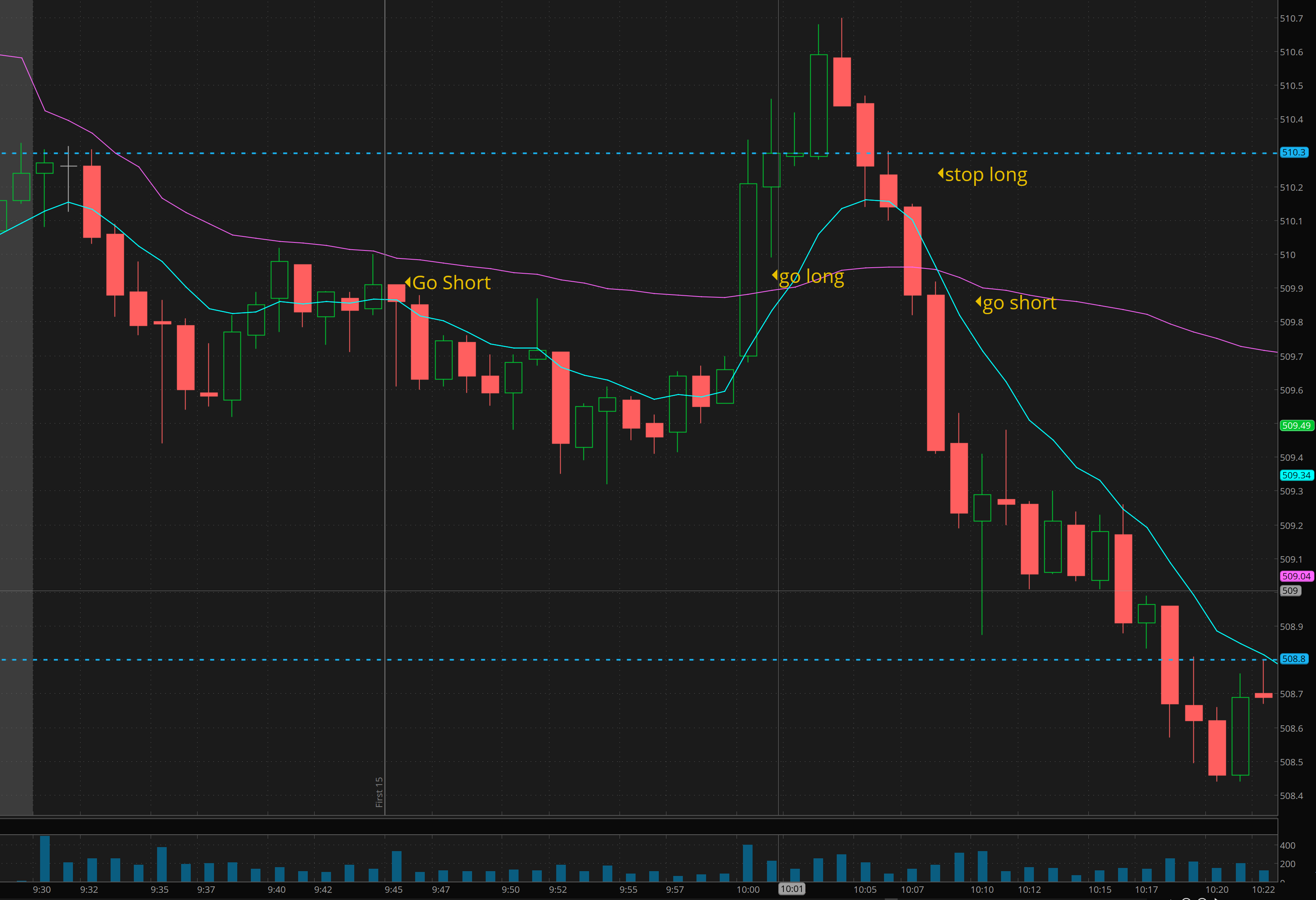 As I wrote before I wanted SPY to back test 510 before a move higher, and so I was watching for a bounce or a break to develop and I got whipsawed in 30 minutes.