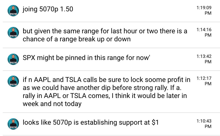 ** alerted 0.30 entry wanted. dipped to 0.40. entered at 0.50Mar 5 - SPX 5070p Entry $1 - High after $13.50 ($1000 → $13500 potential)