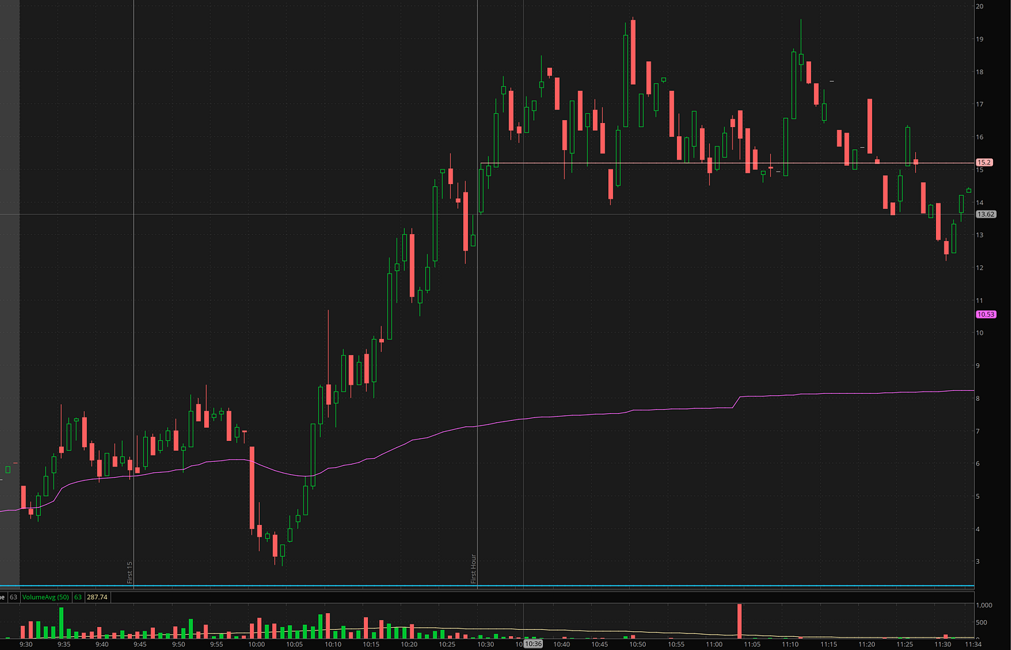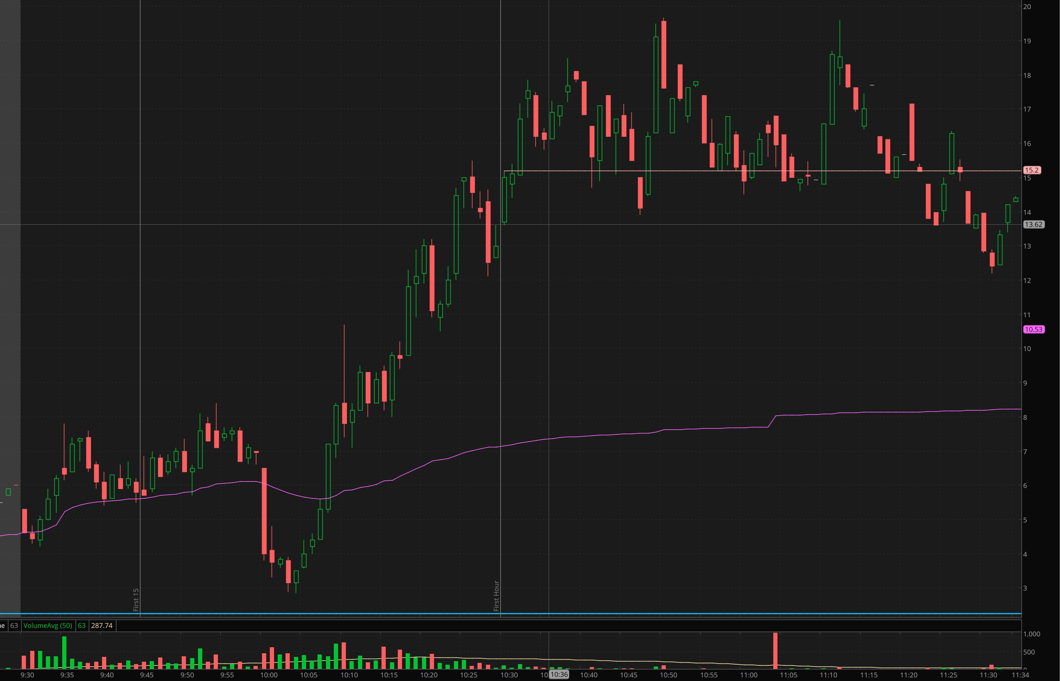 Given the gap down, I wanted a gap fill before going short so when I a saw a new low and then a rally back over vwap, I though failed breakdown go for gap fill, and was good with the idea and ok with my original short getting stopped.