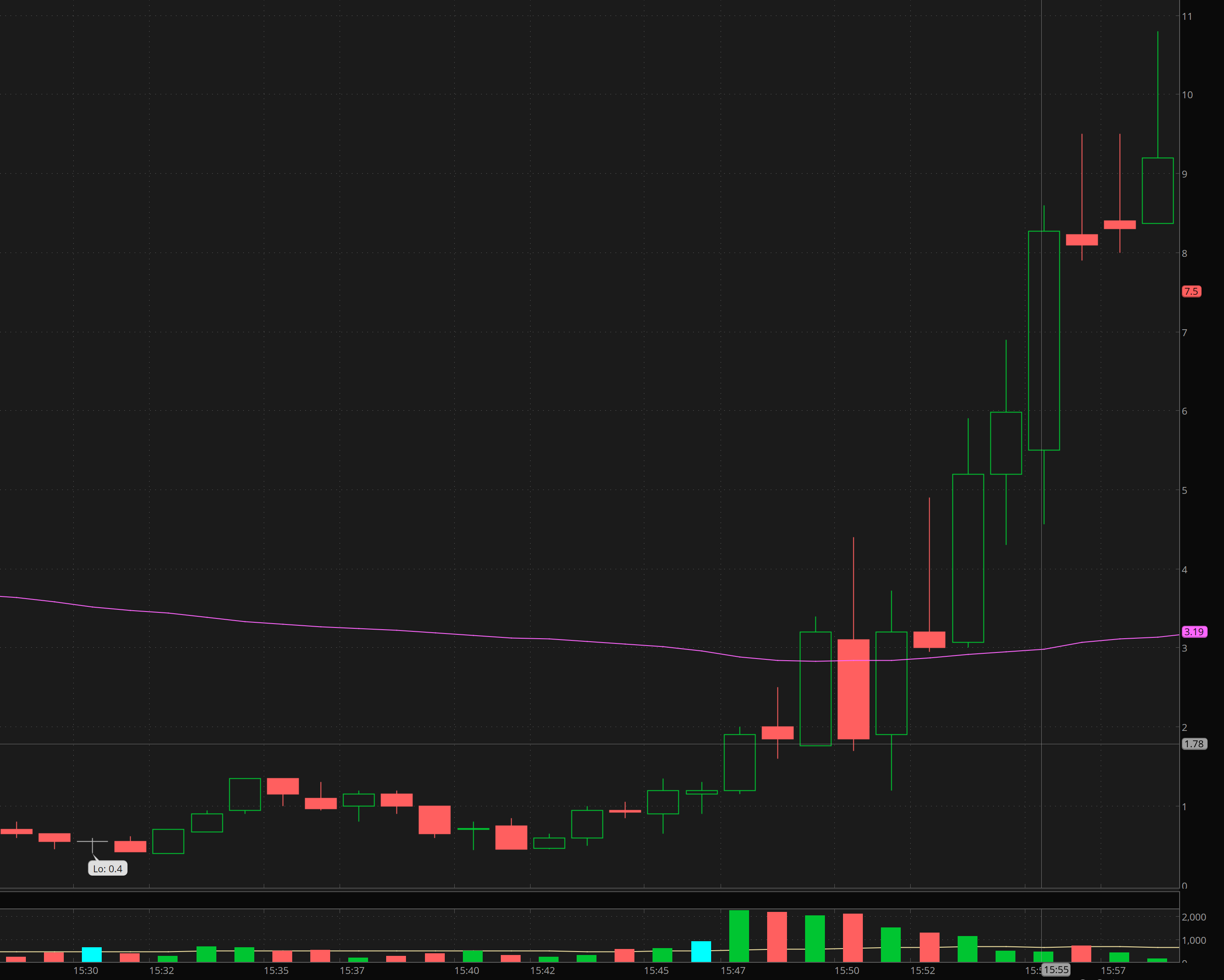 And that is what happened!. I sold more my normal process. and was down to 10% size for 10x at $5. and let the last bits ride into close. ending at 8.65.