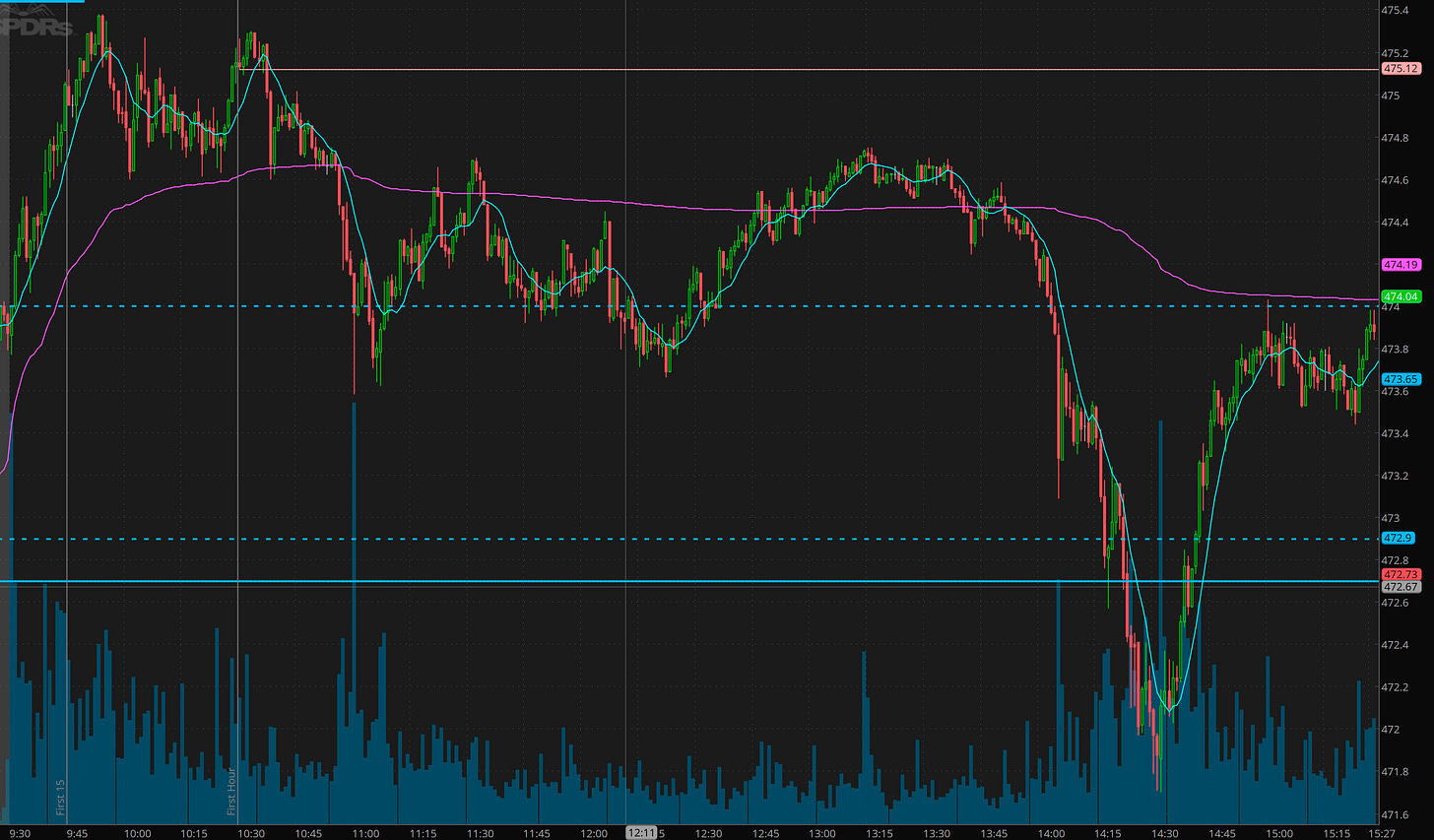 I thought I was looking at SPX 4760p when I shared my trade plan, but I was actually on 4750p in my broker and ended up chasing the short at 2.5 for a spike into $14-$17. I tried holding for 25-30 target but raised stops to $11 and got stopped out. Turns out I was wrong on the downside targeting. One of the things I do after each trading day is analyze, why was I wrong, why did a turn happen where it did. Turned out on Friday, SPY found support at 472 (premarket lows)