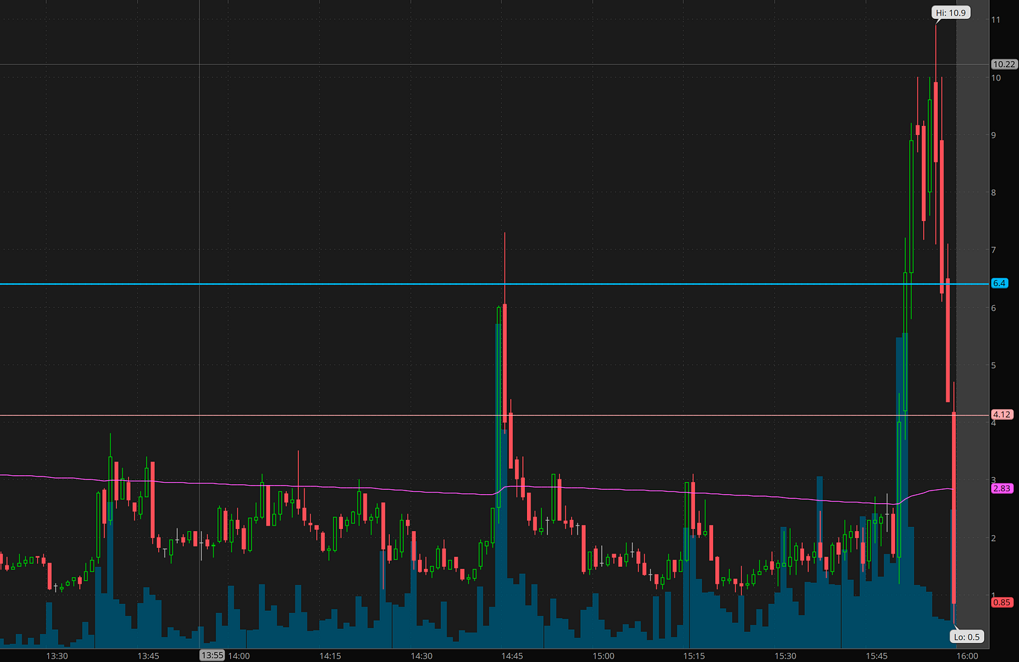 I was overall exhausted by the time the second dump came and so didn’t take the reload. at 1.20. I saw volume come in and chased at 4 and sold at 7 and 10 for quick 100% gainer and then I was truly done. The only reason i took this trade was give the failed breakout, there was a small chance we could got a massive sell off ahead of CPI today.