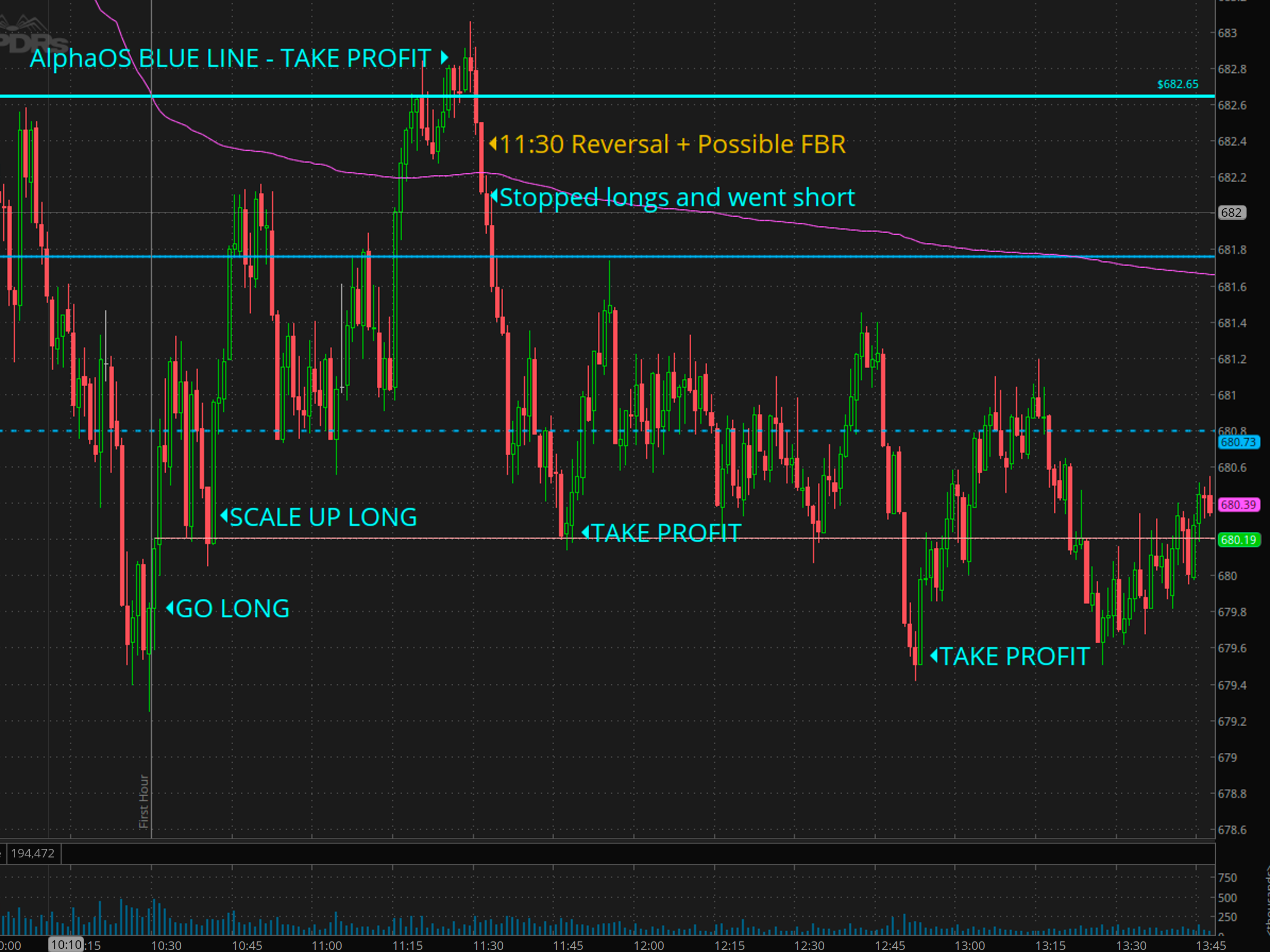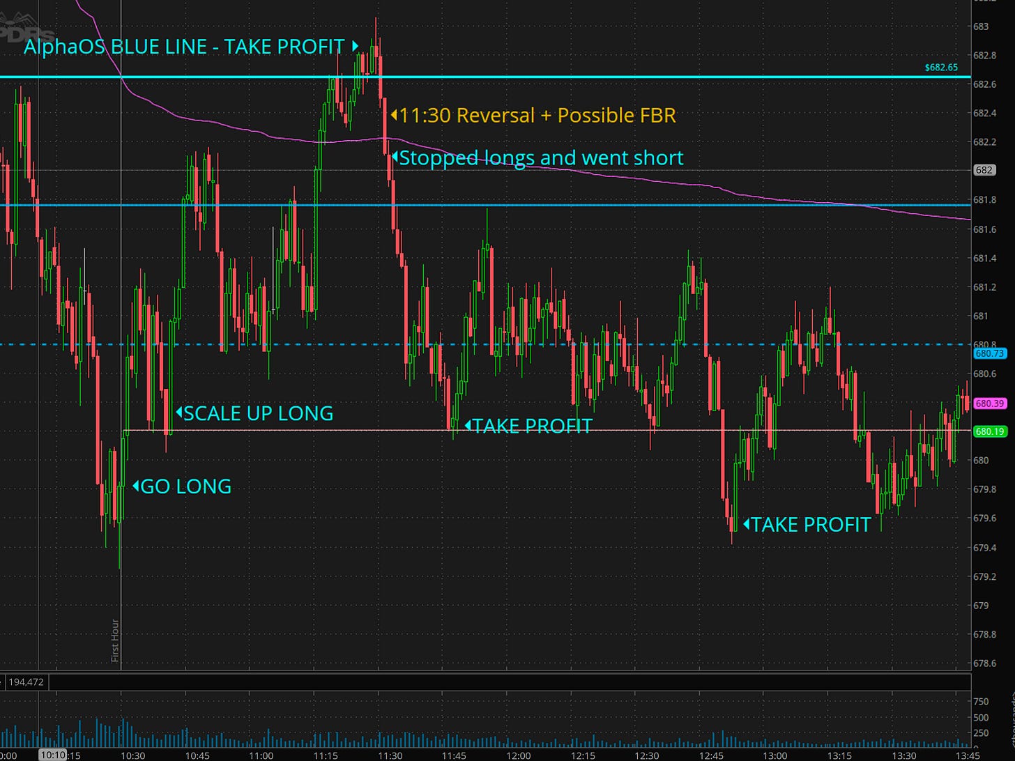 I missed the morning short, but we got long at 10:30 for a nice 3 point rally into the AlphaOS blue trend line. Its a custom trend line I have as part of the AlphaOS platform. (Rebranding Edge to AlphaOS) since it is geared to help traders extract Alpha systematically.