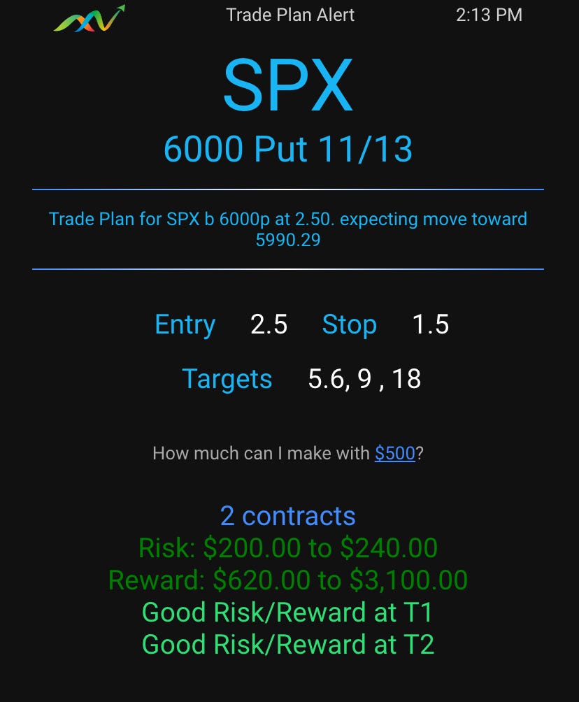 Nov 6 - SPX 5880p 7 stops 6 → 13.50 ($7000 → $13500 potential) 5R in 30min