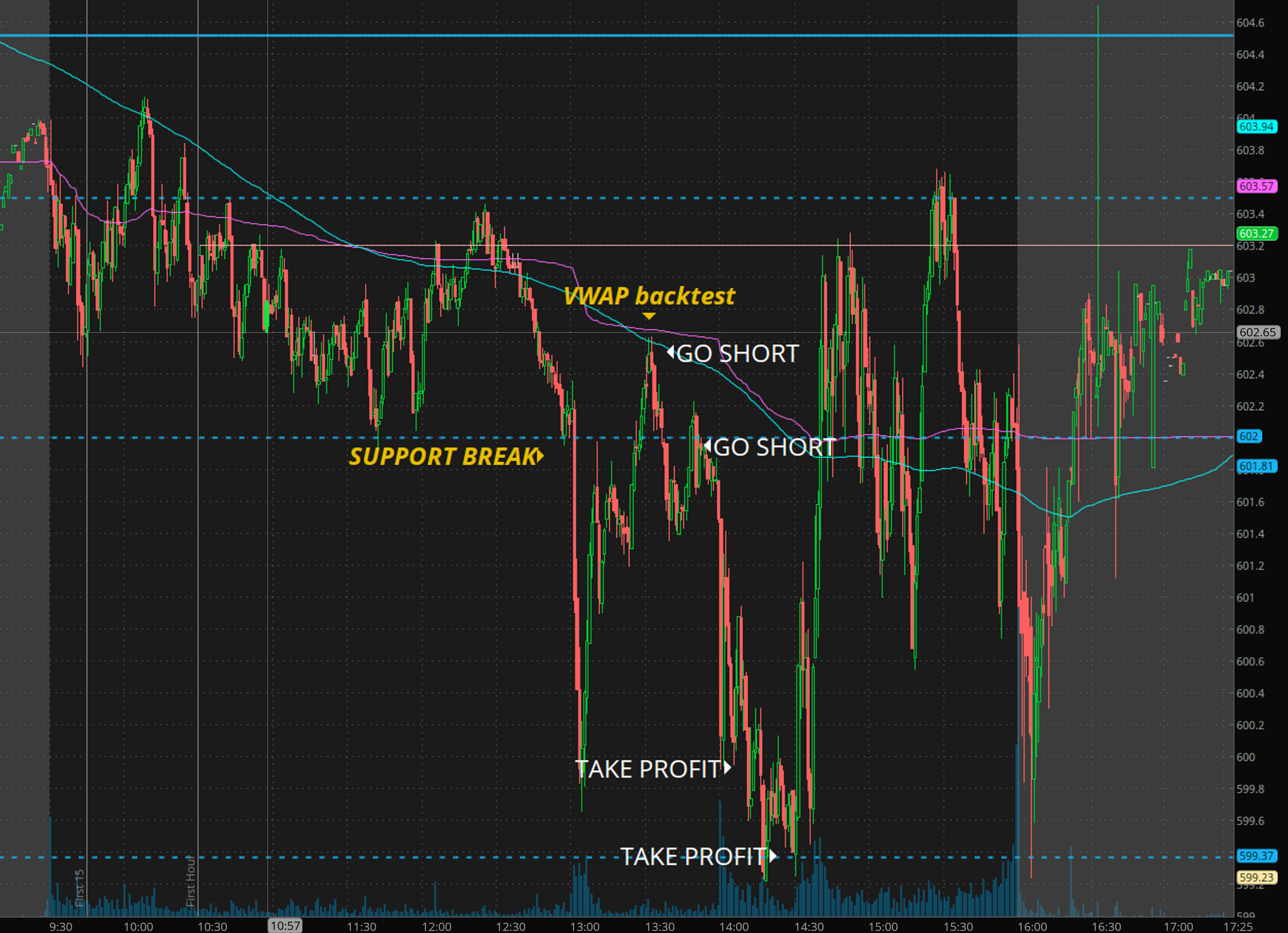 Wait for major levels. long at 599.50 was doable after double bottom and higher low.