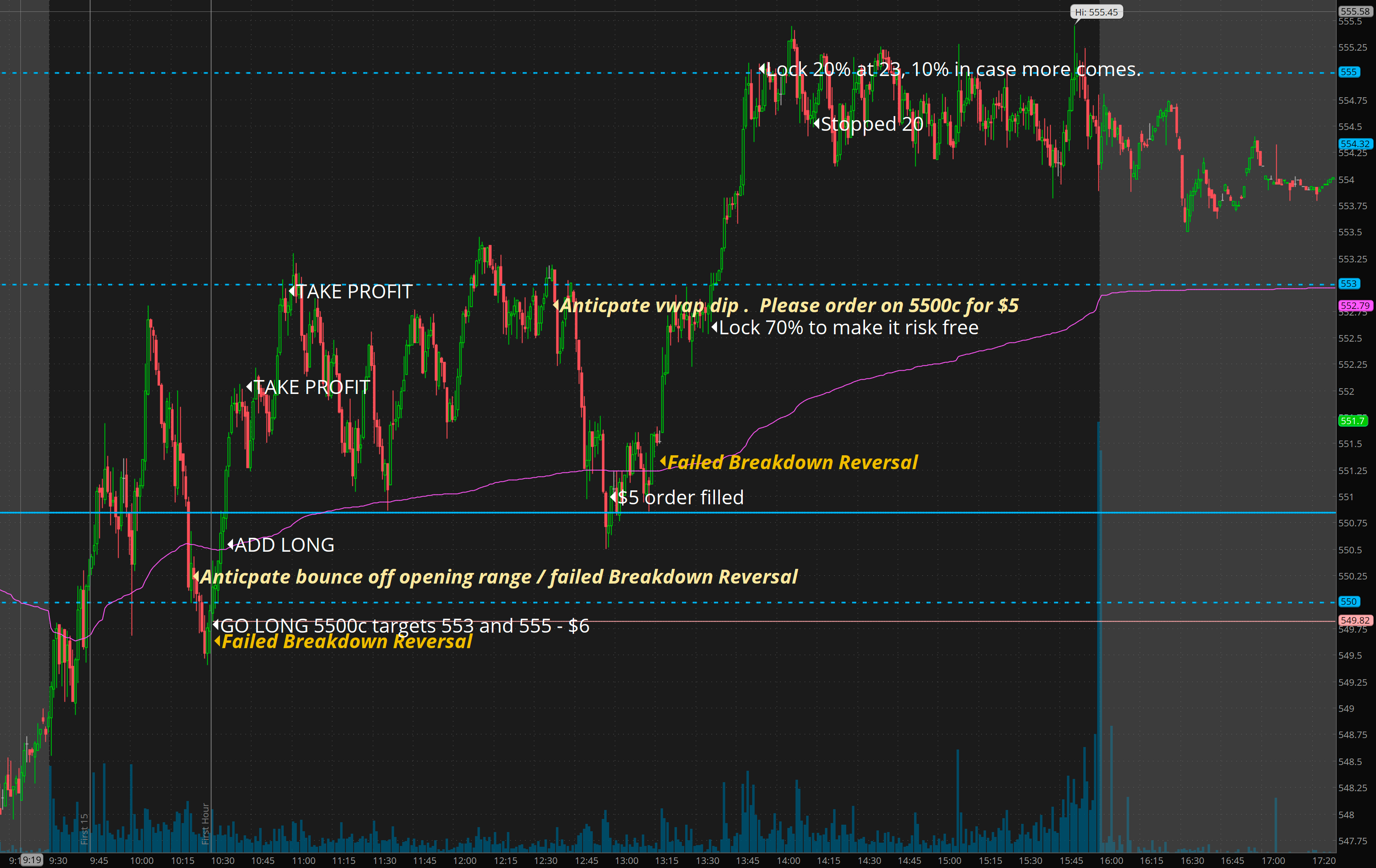 SPX 5550 dipped to $4-5 later in the day on VWAP. Alerted target $20-27. Alerted exit- $23! high of day 23.50