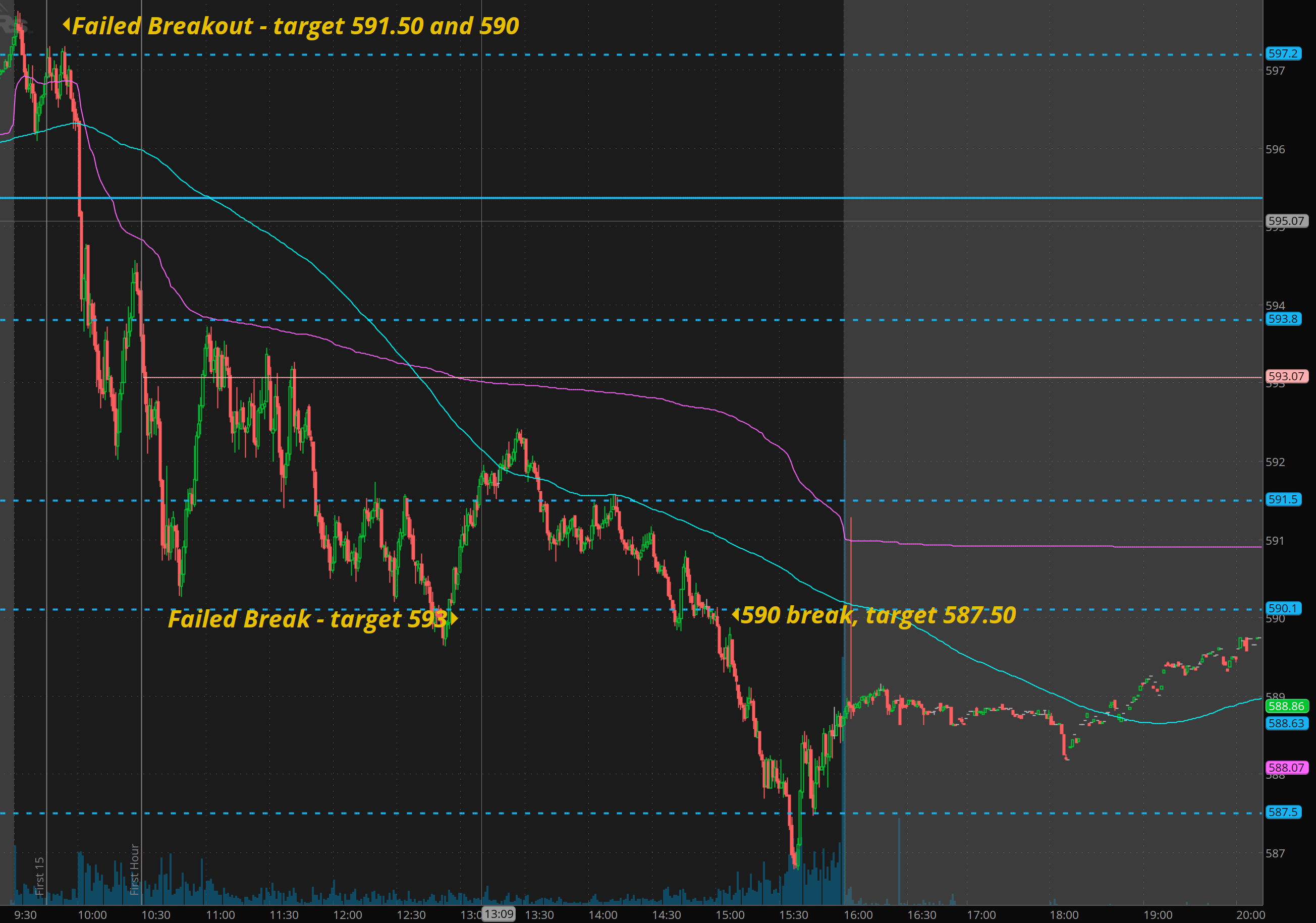 SPY - clean 597.50 rejection followed by ISM data at 10am triggering flush into 587 by end of day.