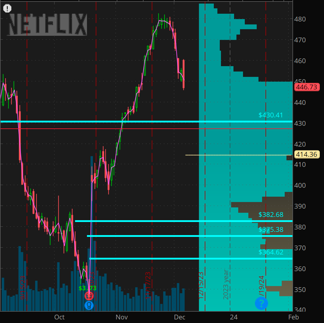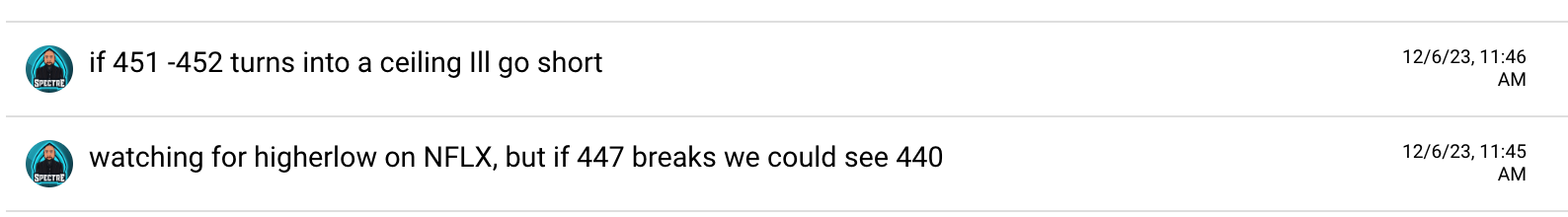 NFLX - Also, I was planning to get long, for another leg up in market, but the price action proved not great when 448 could not hold. We were able to get short on 451-452 back test intraday