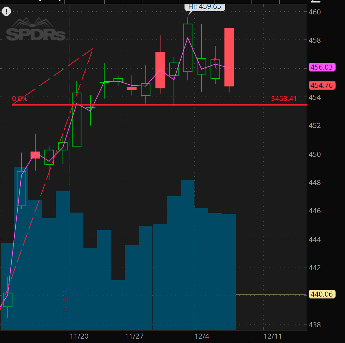 SPY - That isn’t a great look and we now have a triple top on 459 and a close below the previous 4 day opens. $453.50 break, can lead to a corrective move into 450, 445, and 441. Will the last 2 weeks of basing lead to a dump?