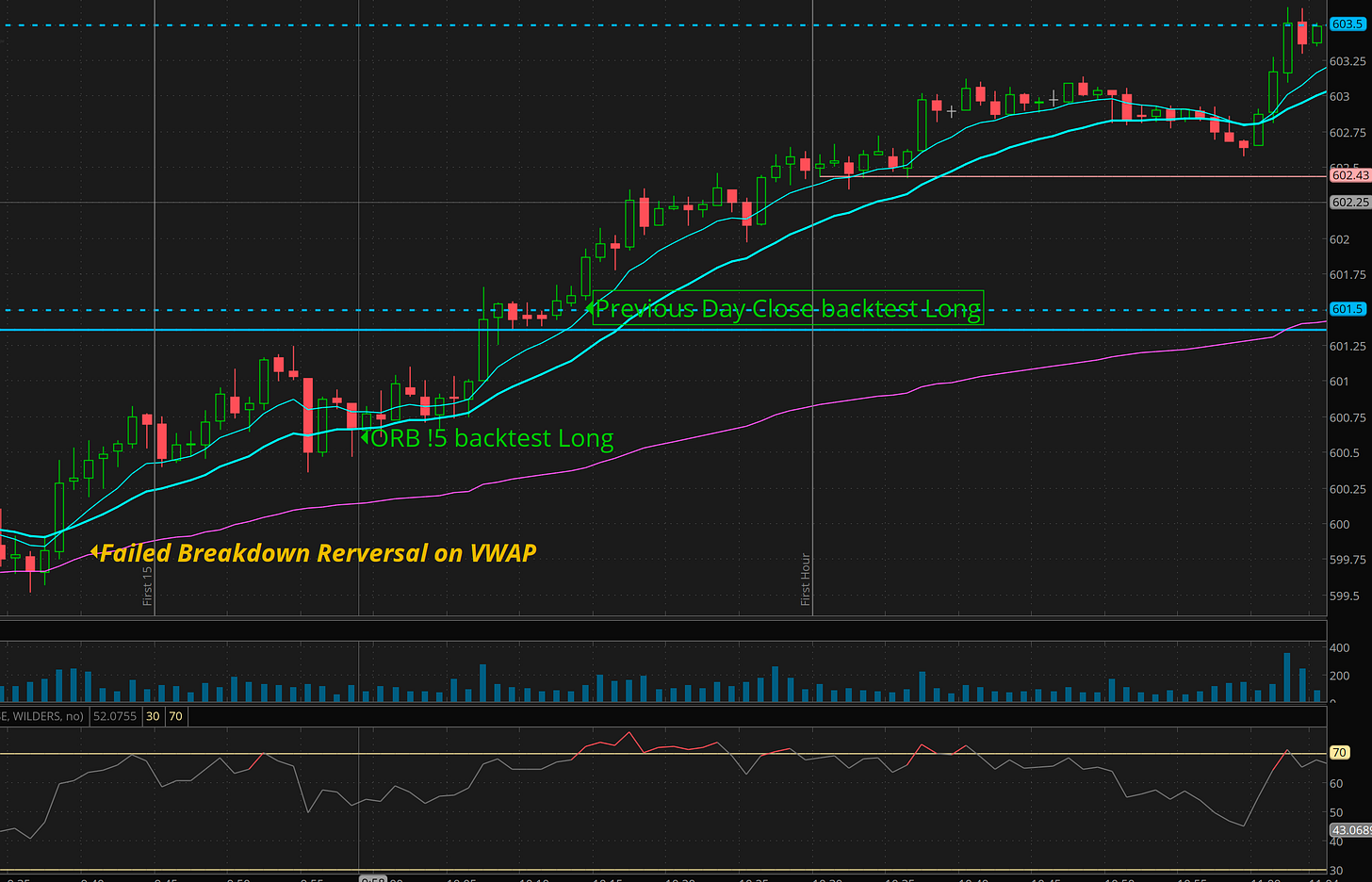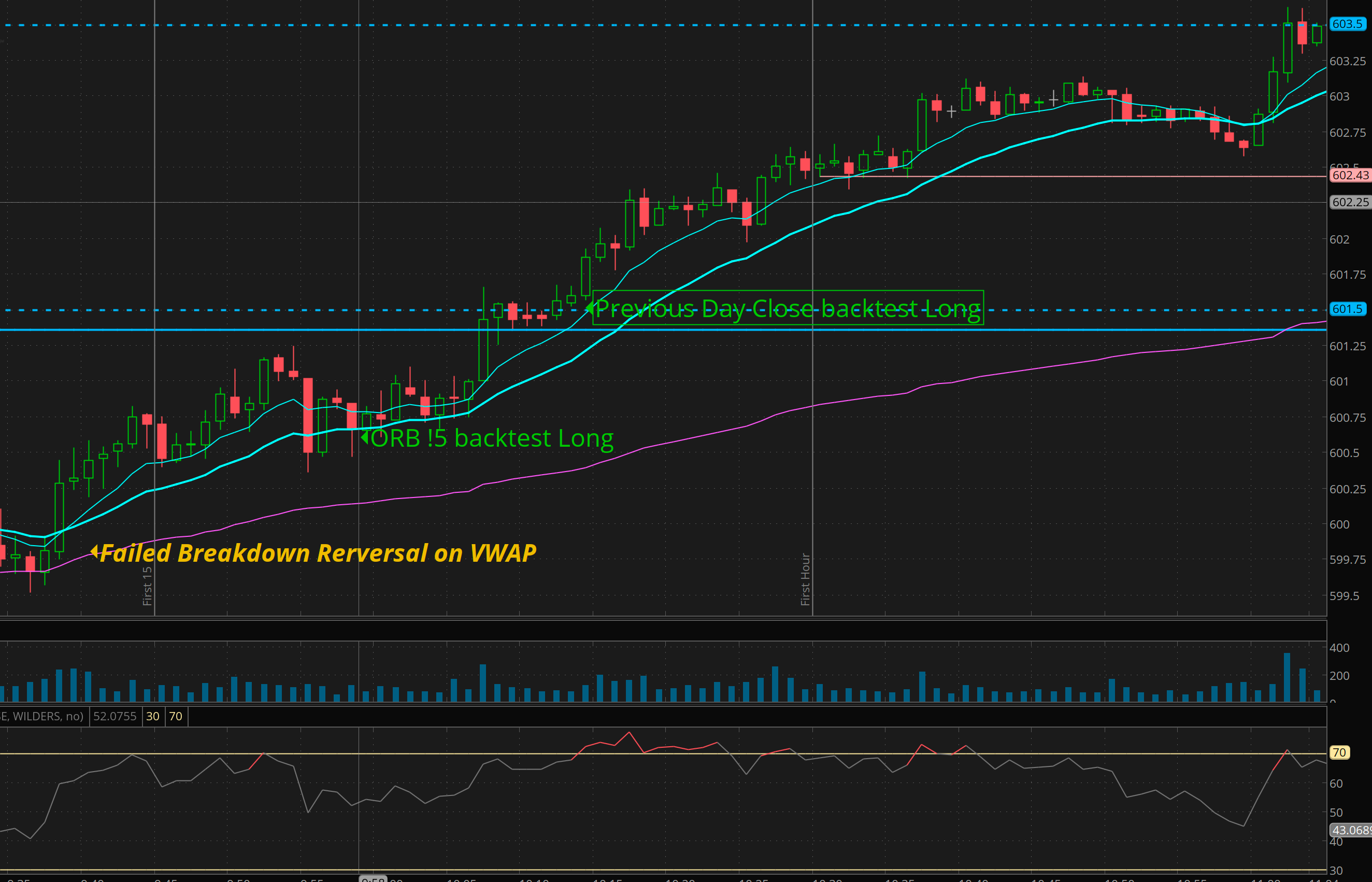 no dip to 598 on open. SPY crossed 601.50 on open and back tested it during first hour. Let’s see what the opportunity was after seeing this confirmation as well as if got long at 9:55 after ORB15 high was tested.