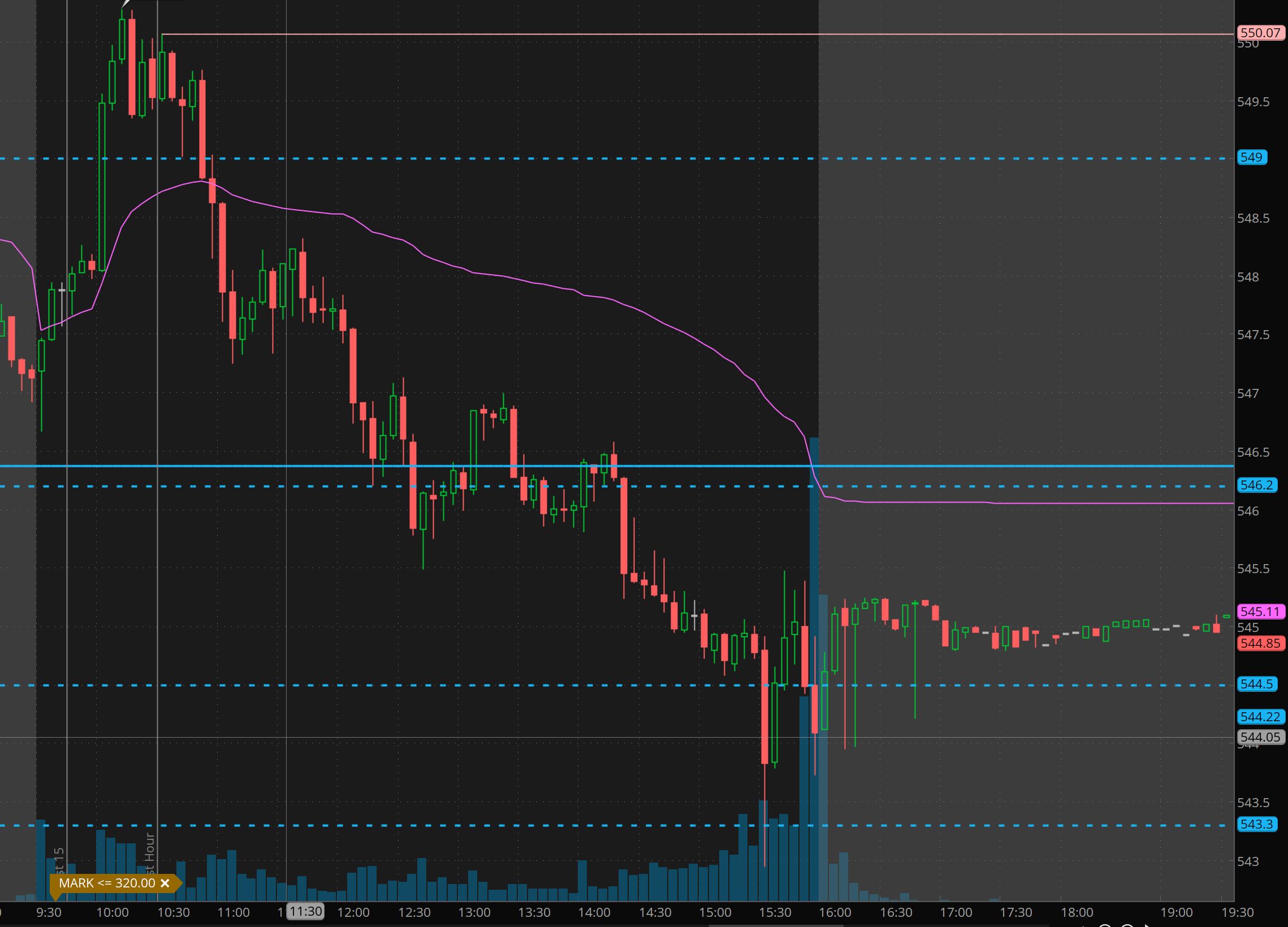 After the first hour once vwap broke, SPY began non stop selling eventually tagging the 543.30 level! Pefect gap up reversal!